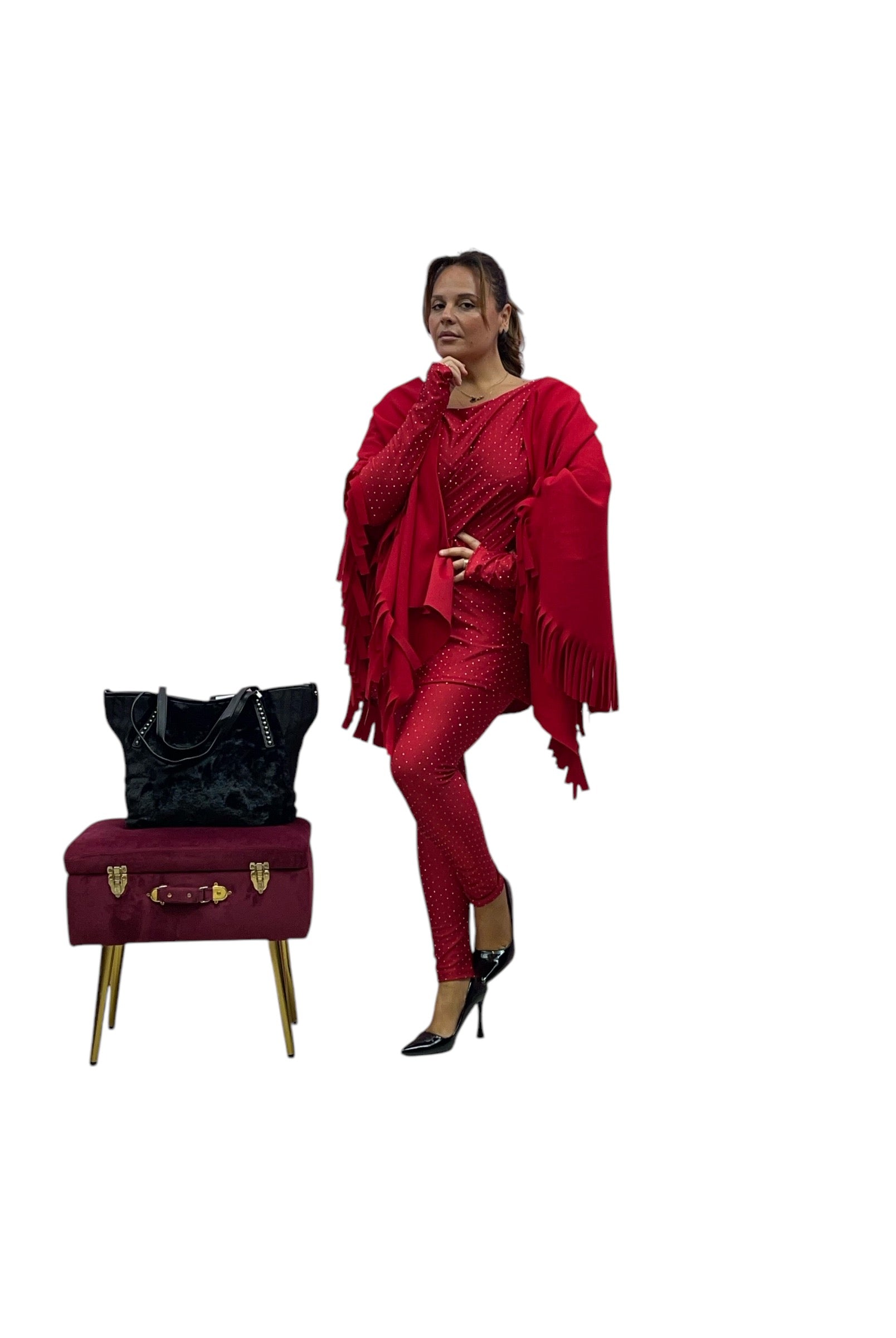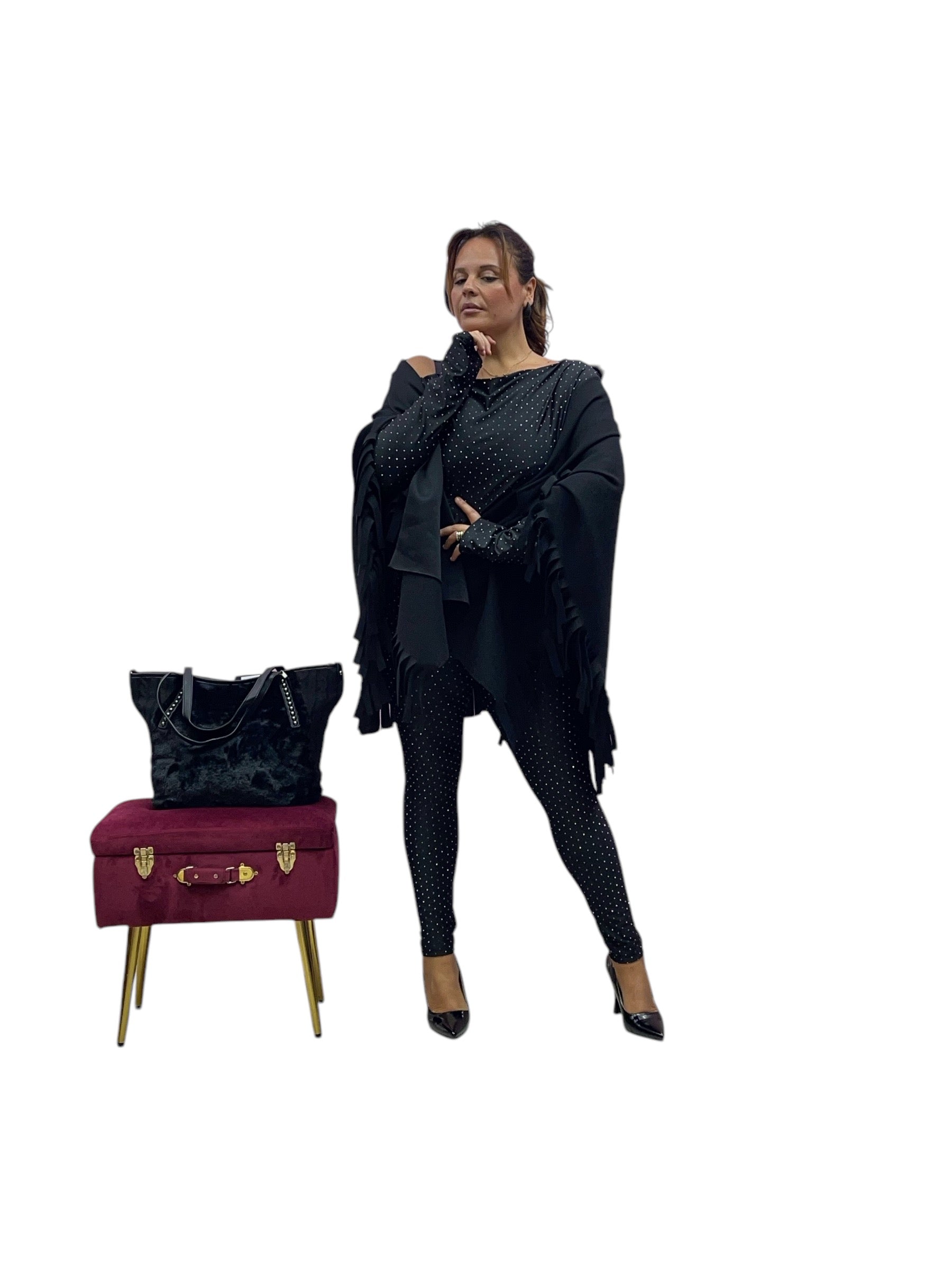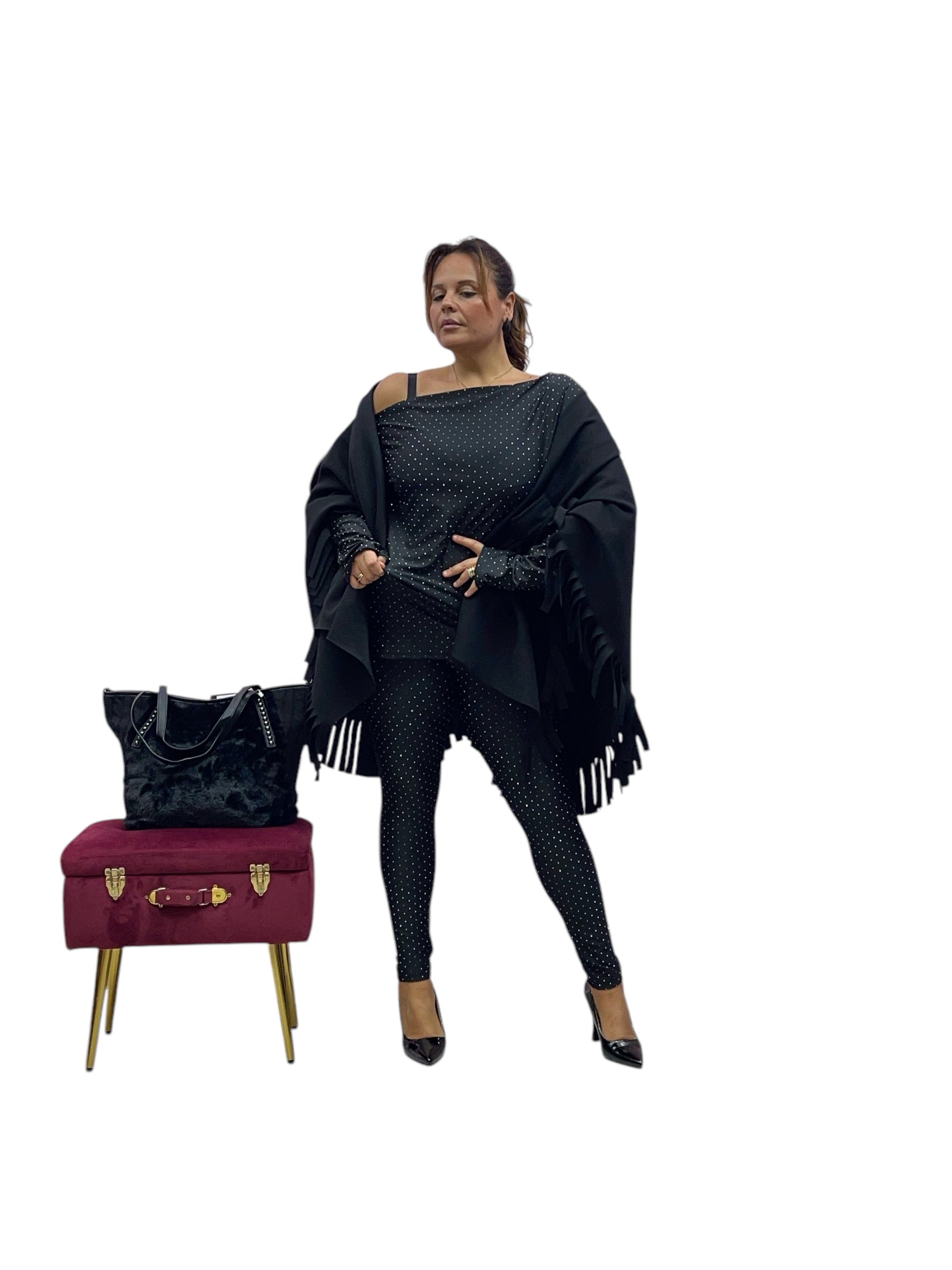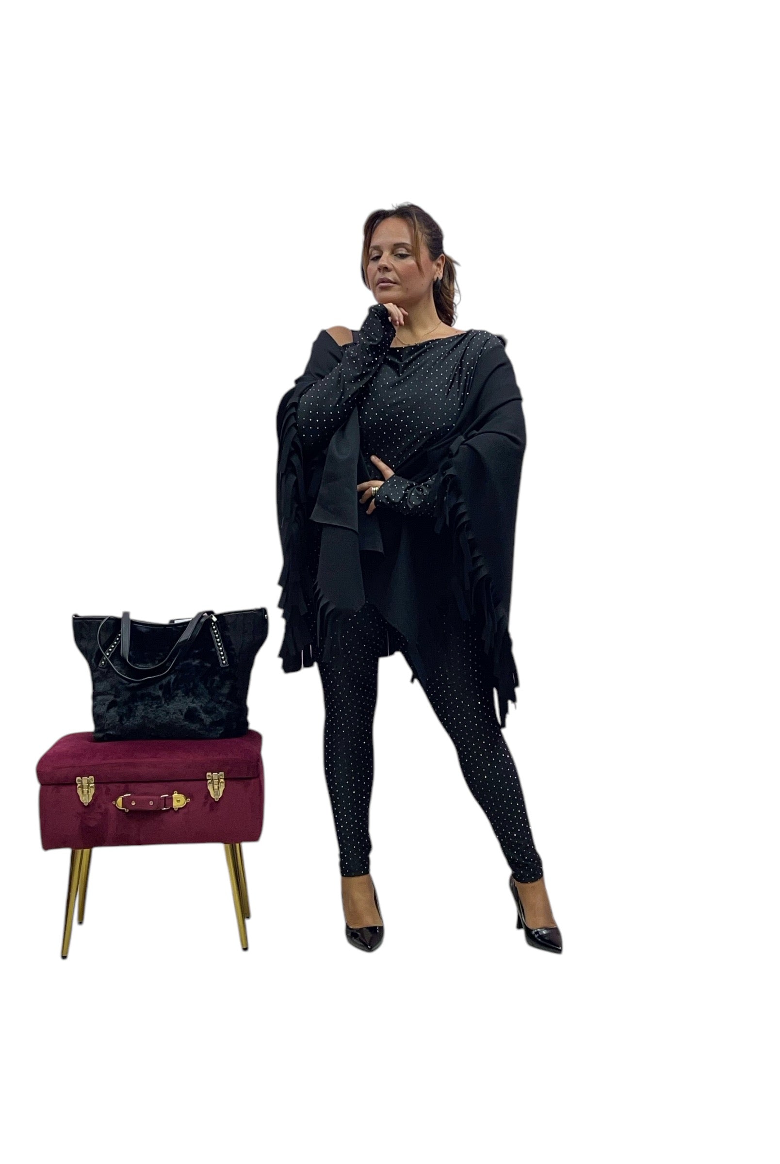 Maglia/casacca in jersey con scollo asimmetrico e brillantini