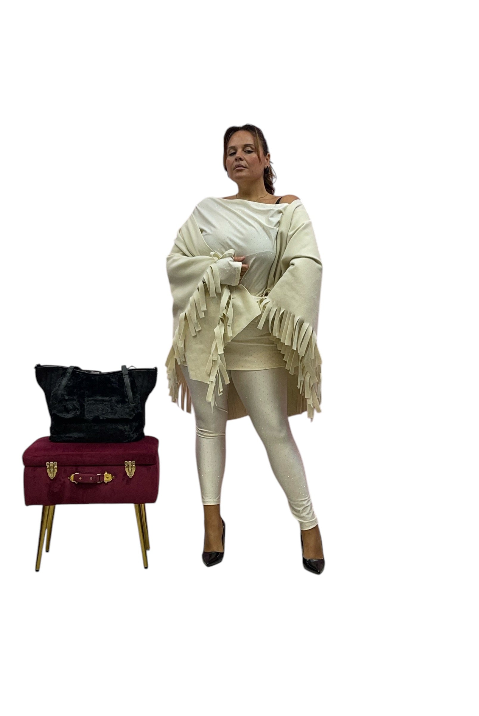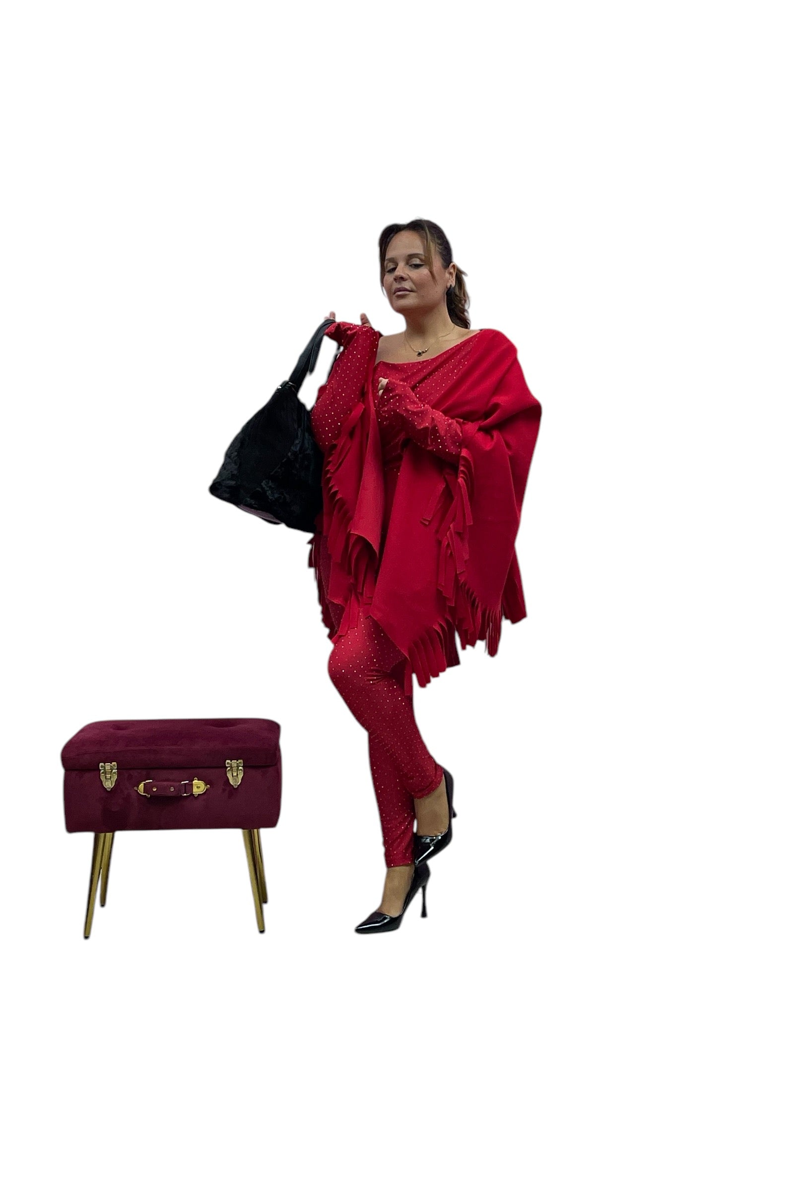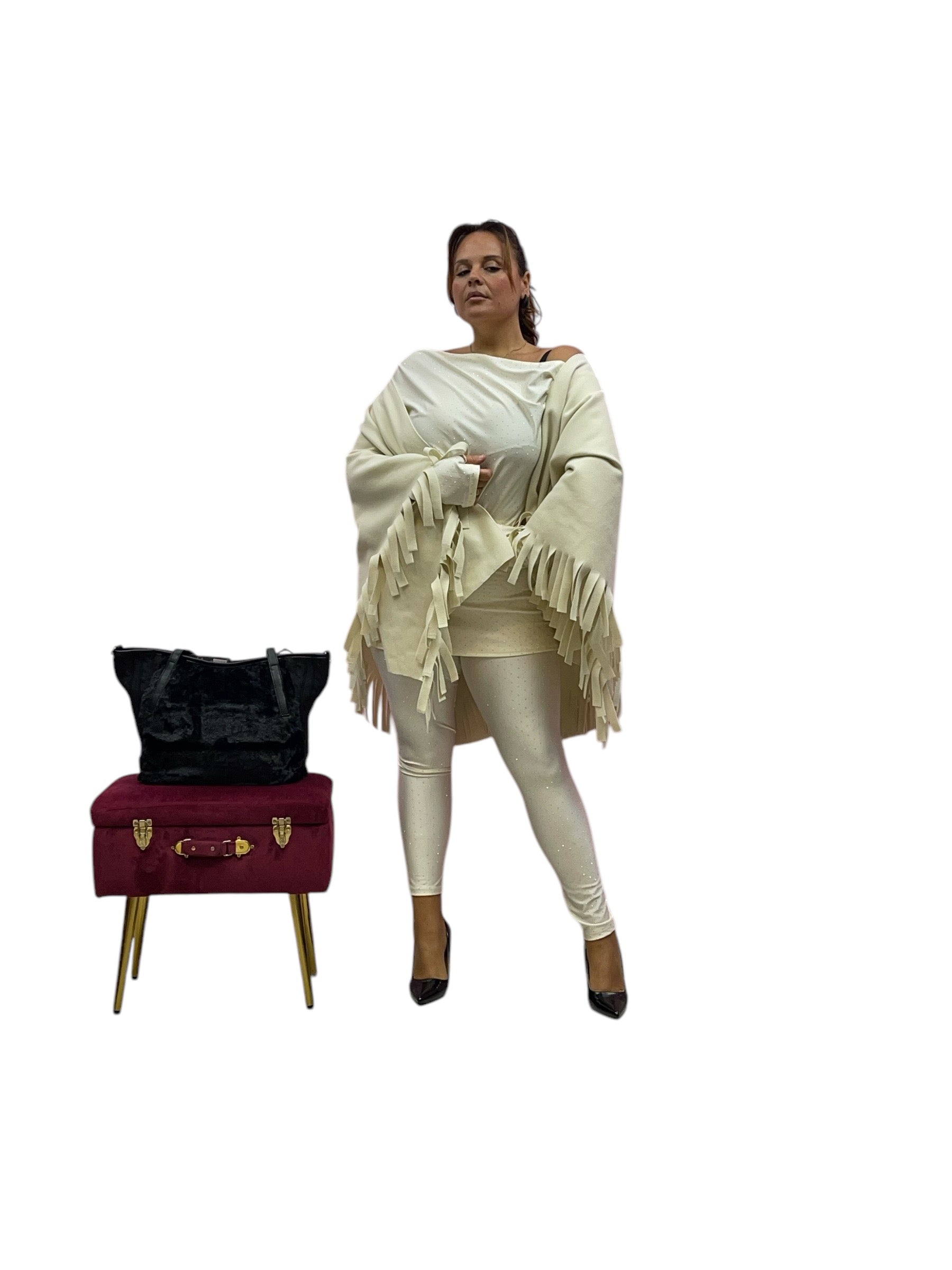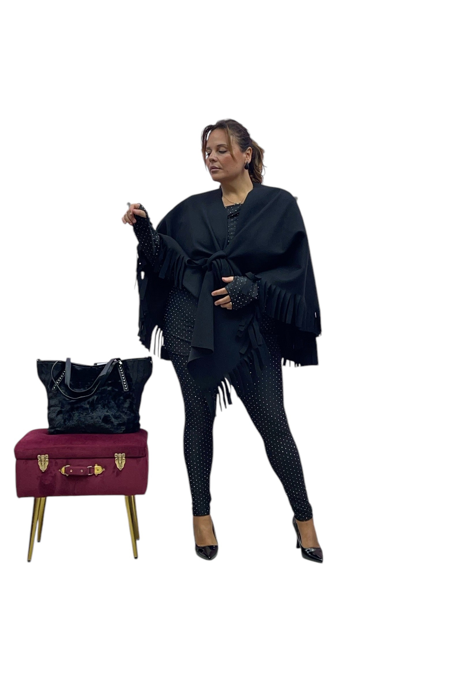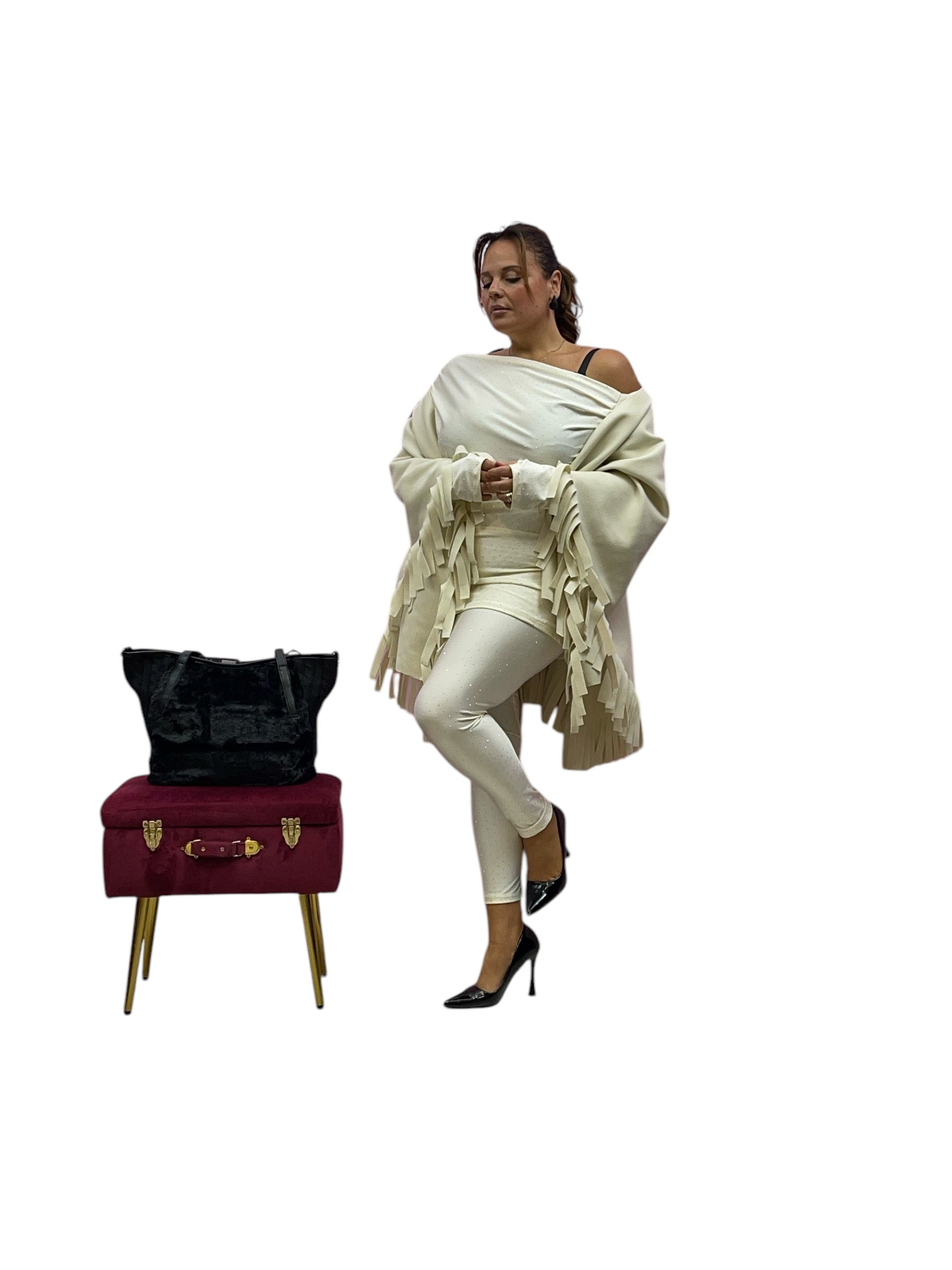 Maglia/casacca in jersey con scollo asimmetrico e brillantini