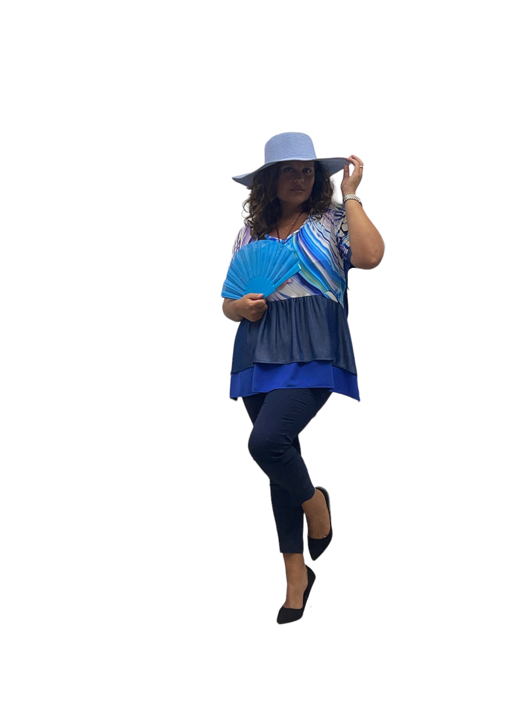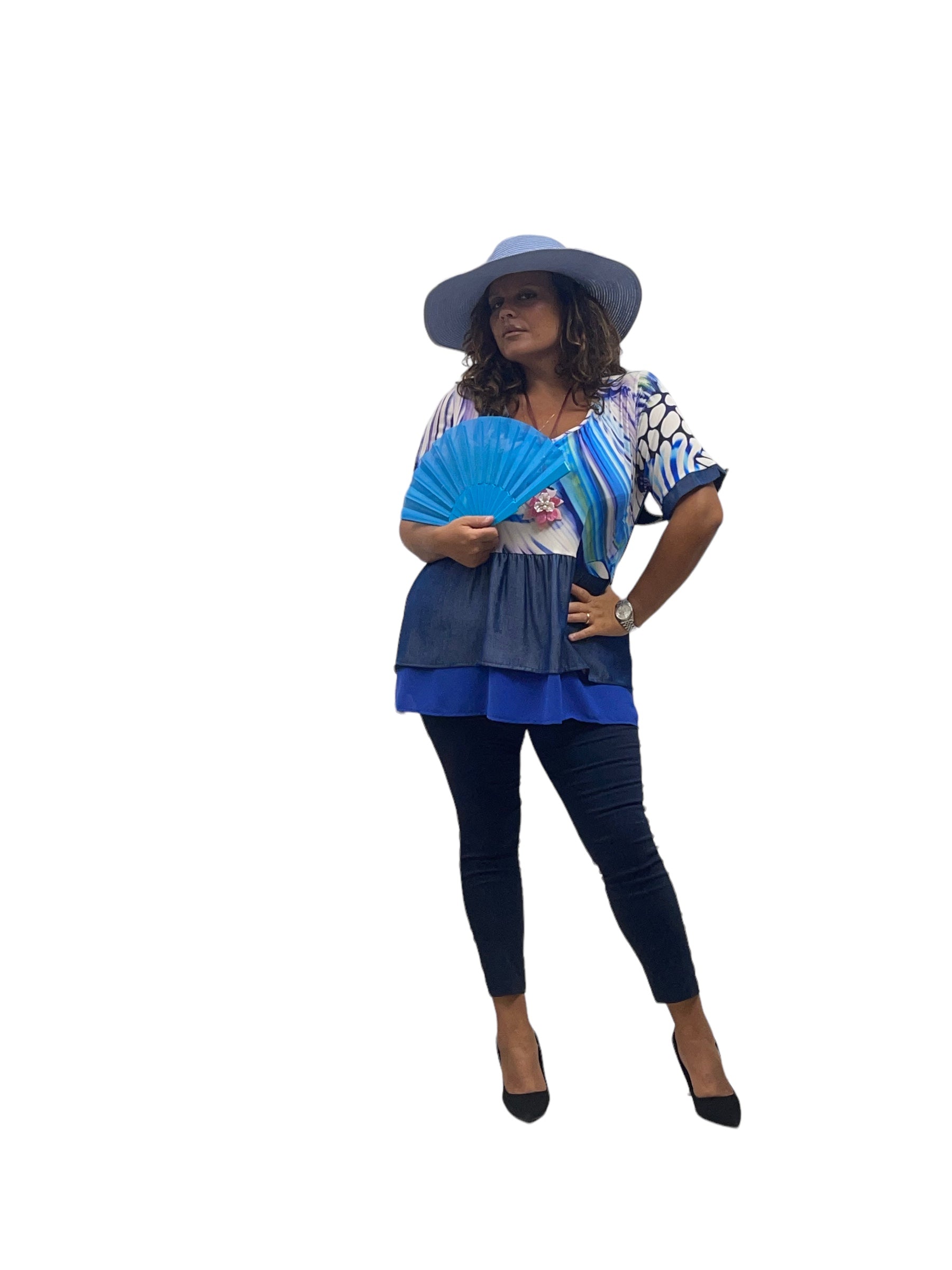 Maglia fantasia fasciata con effetto jeans