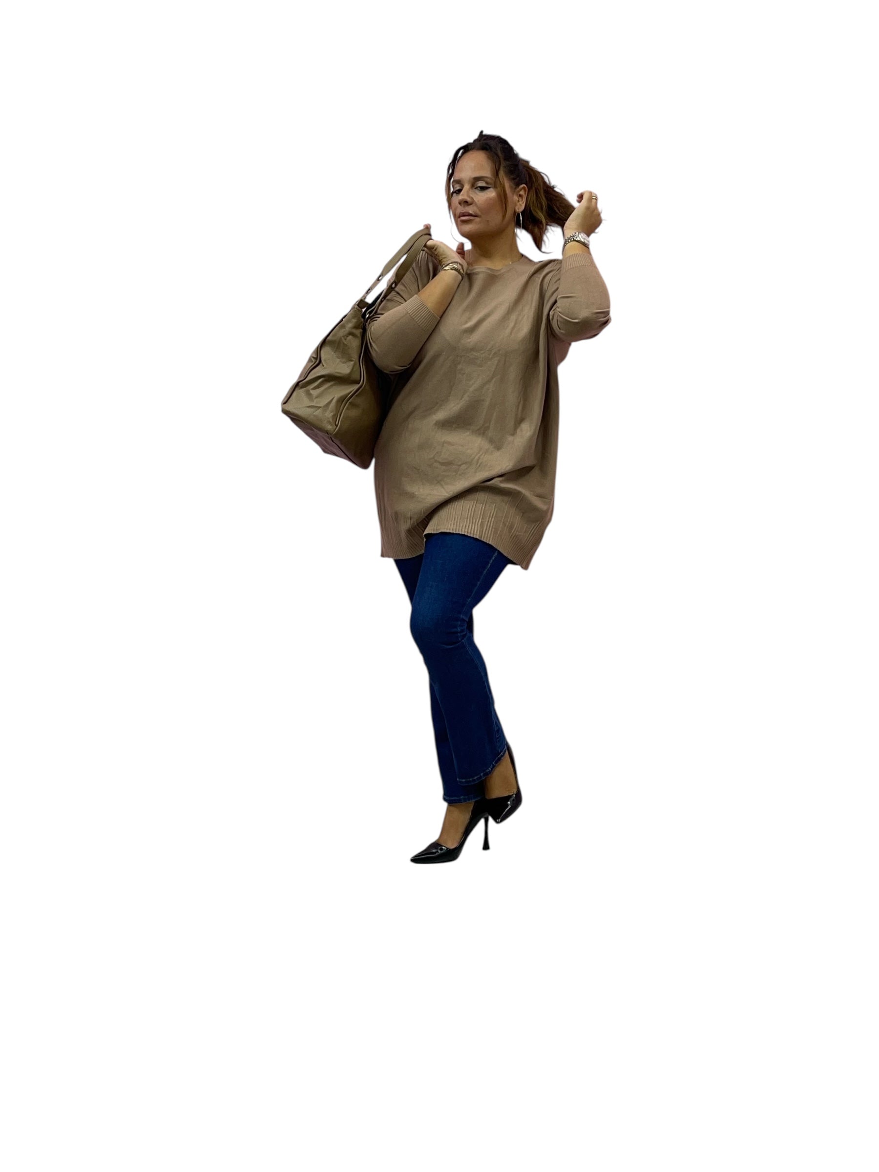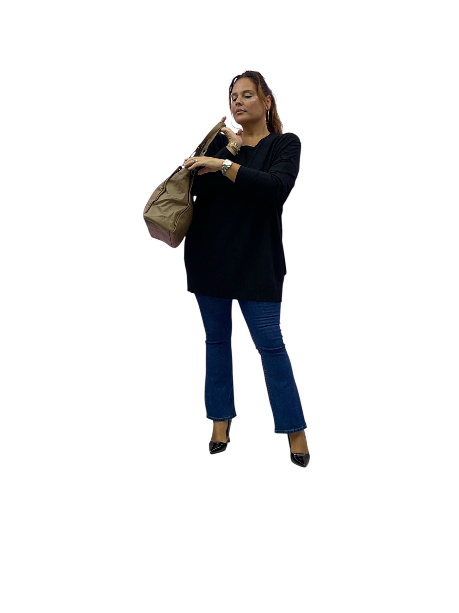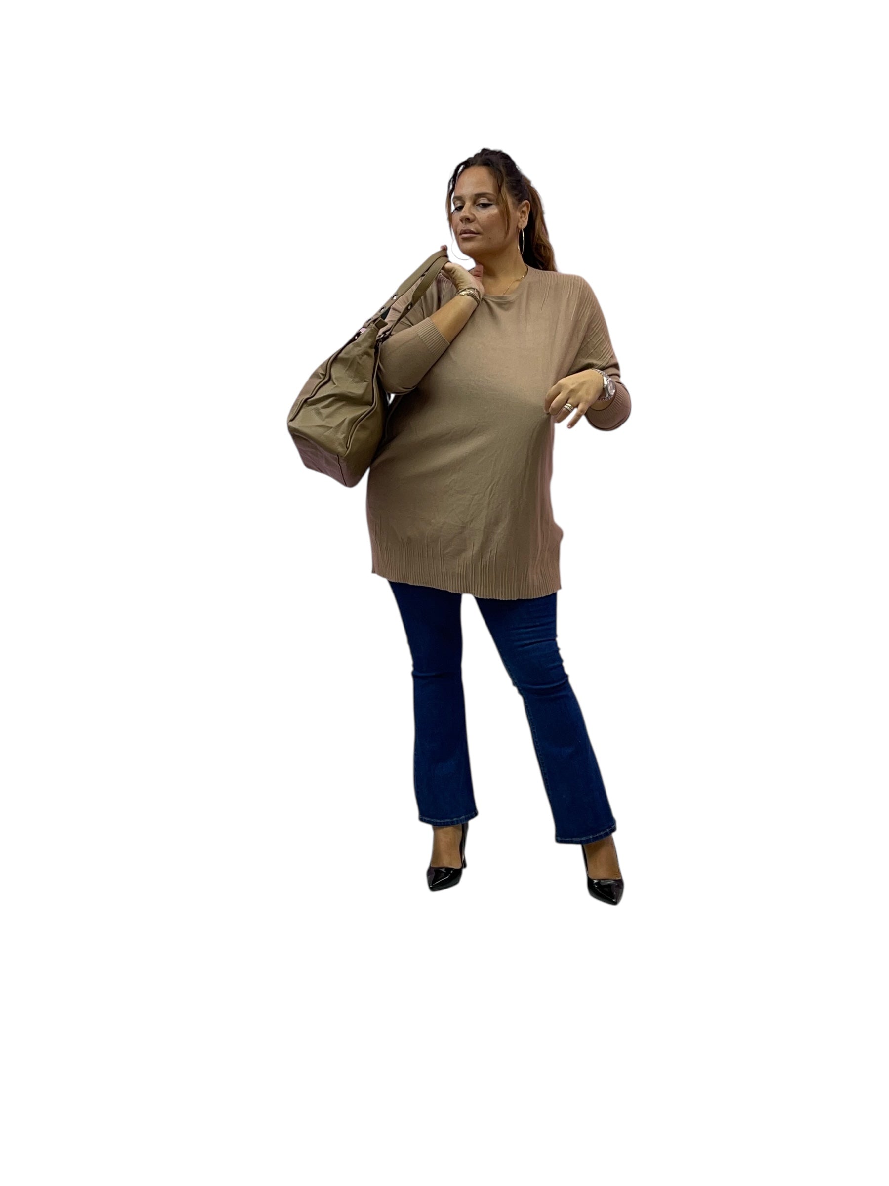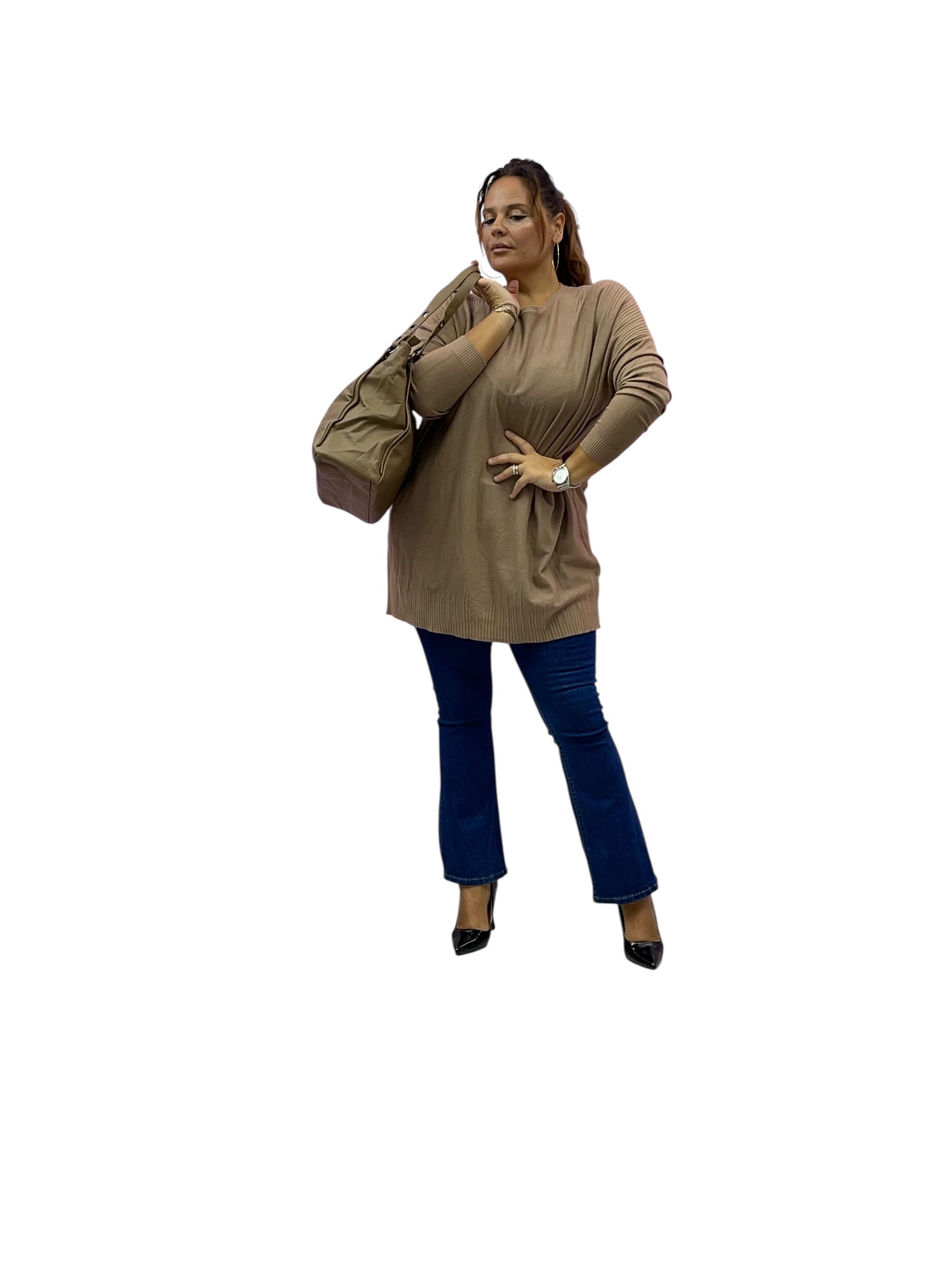 Magliettone over con trama rigata alle spalle e sulla fascia