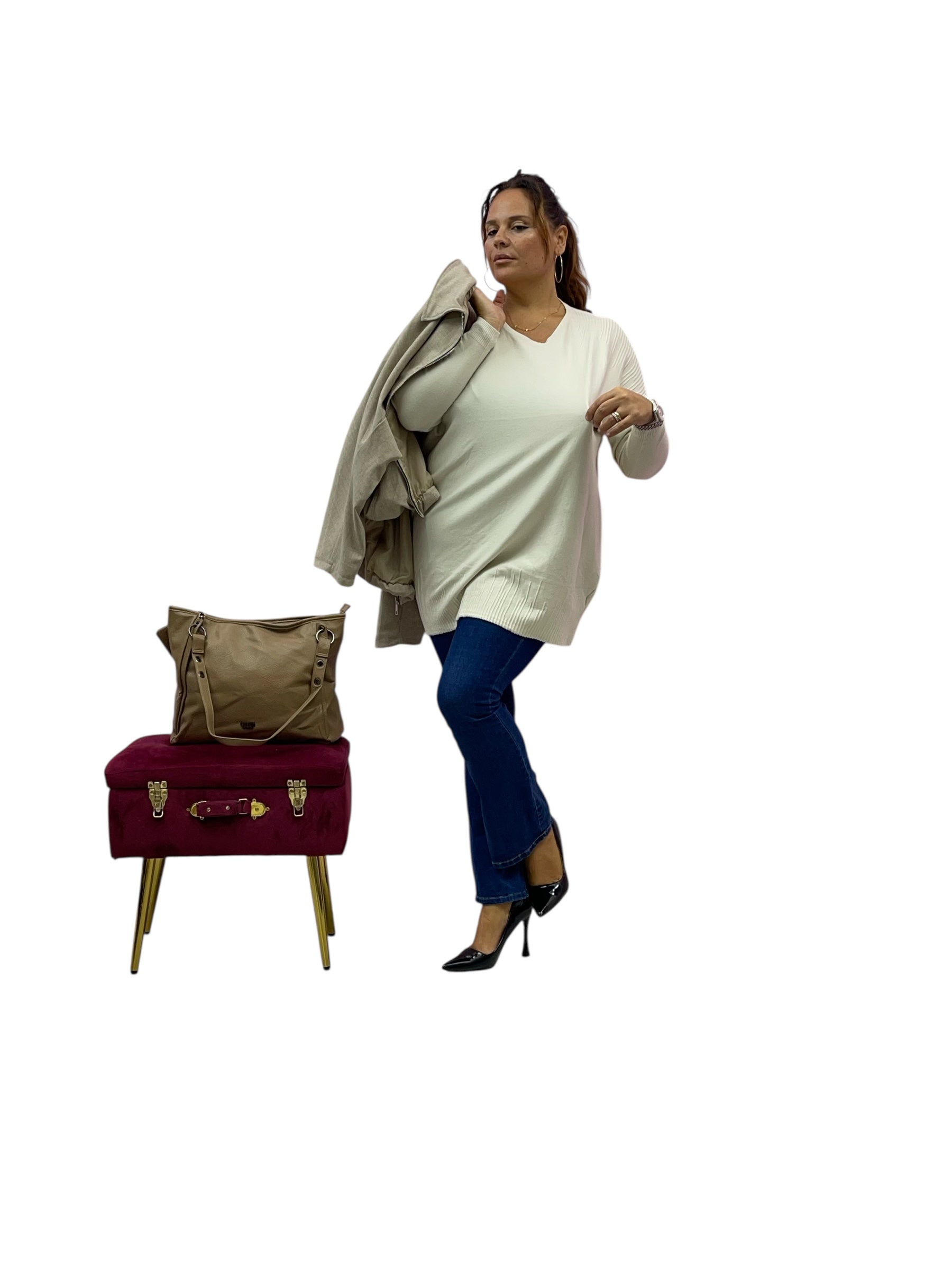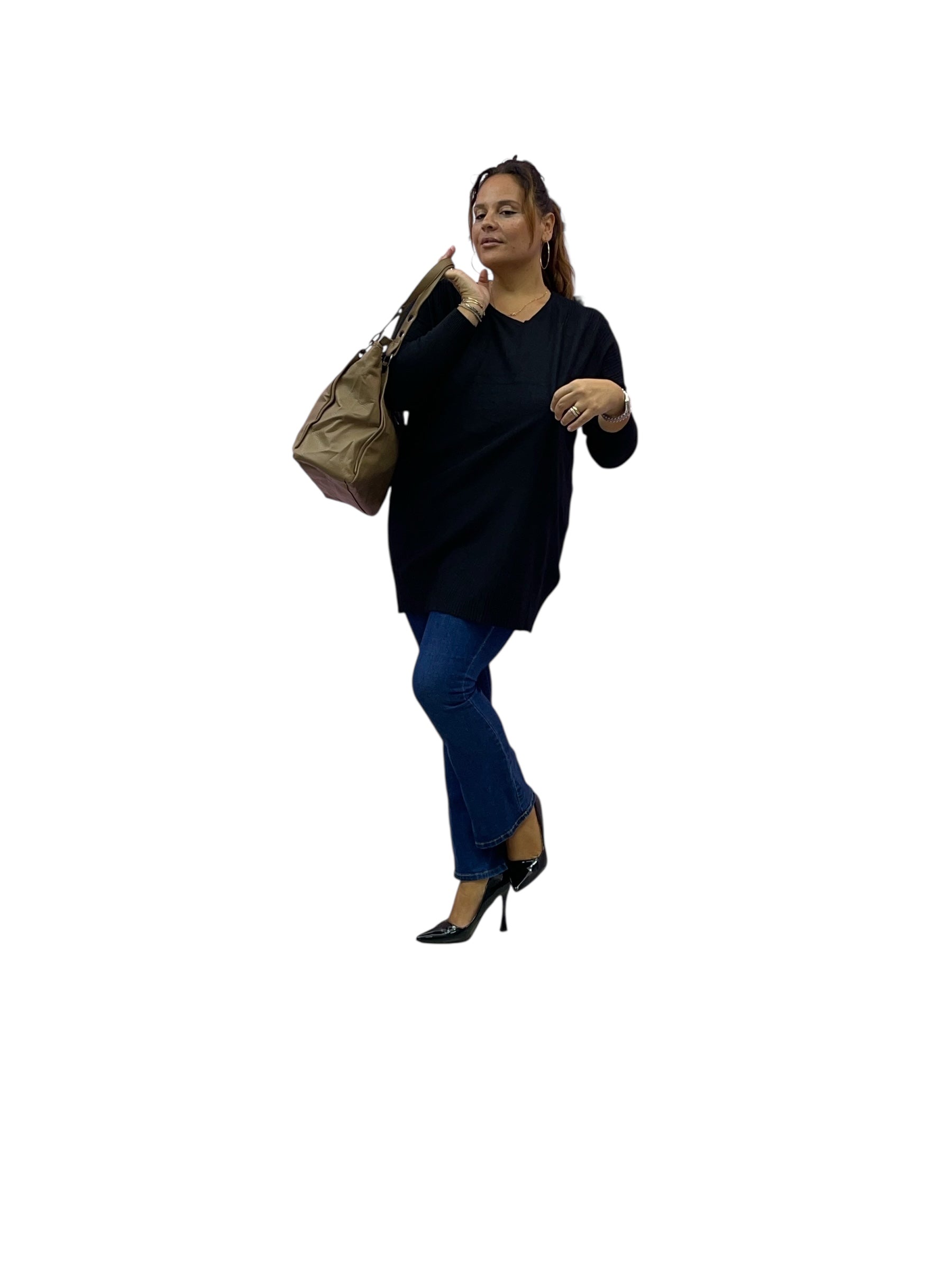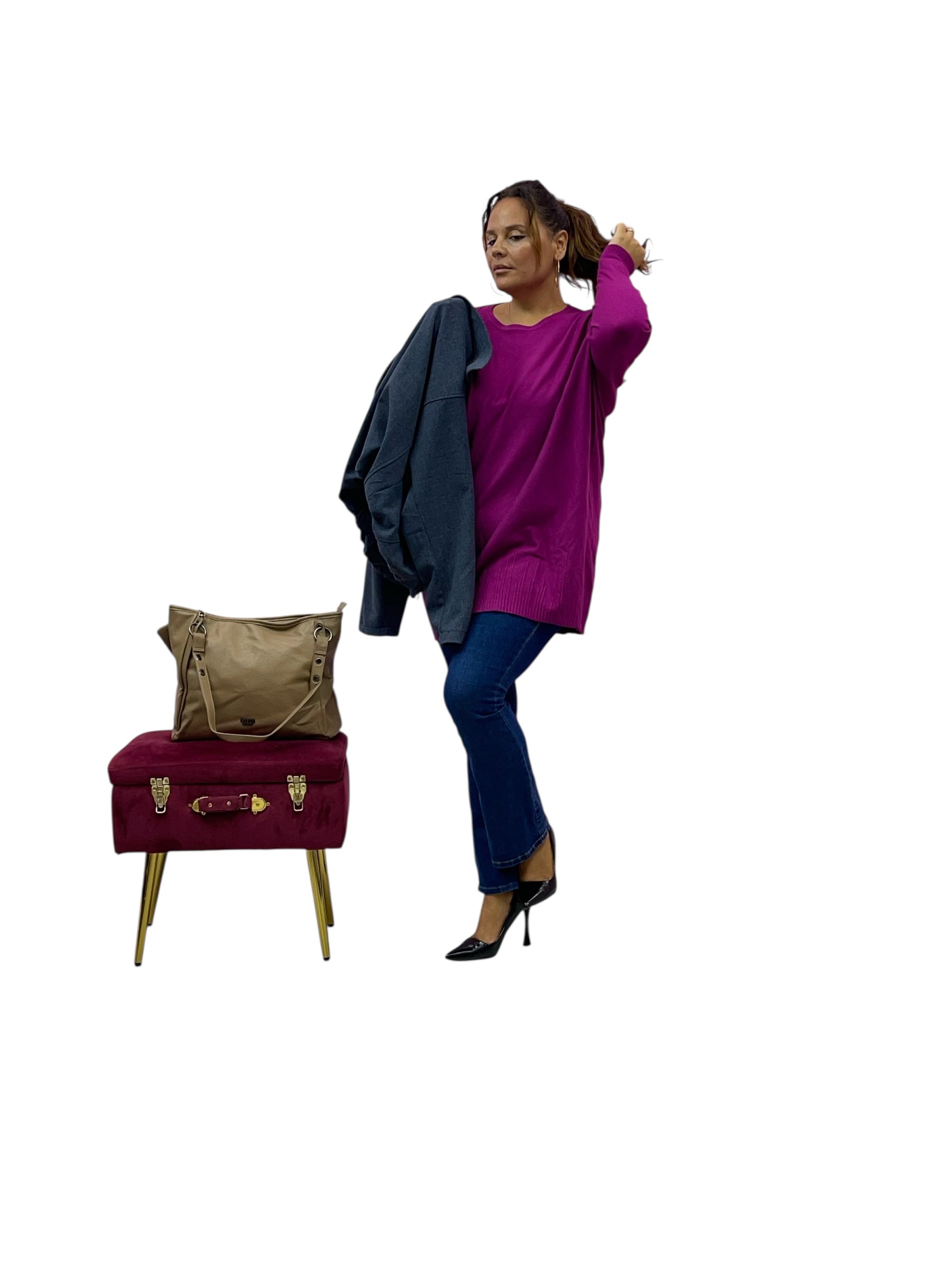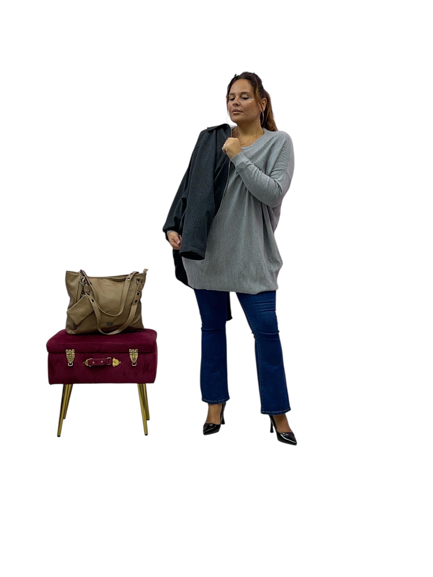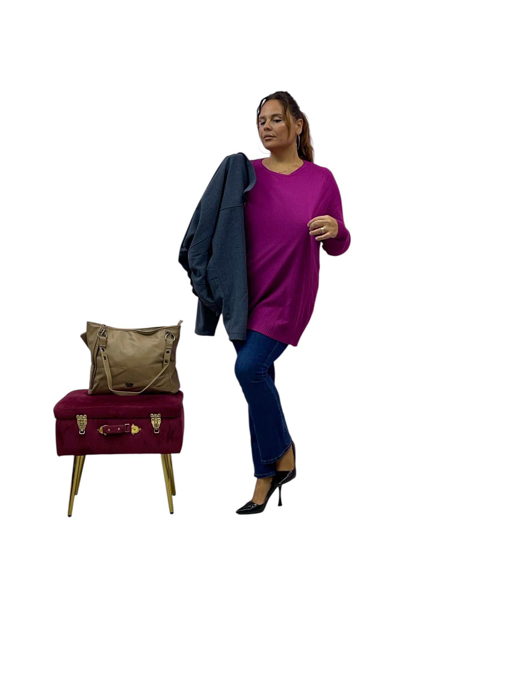 Magliettone over con trama rigata alle spalle e sulla fascia
