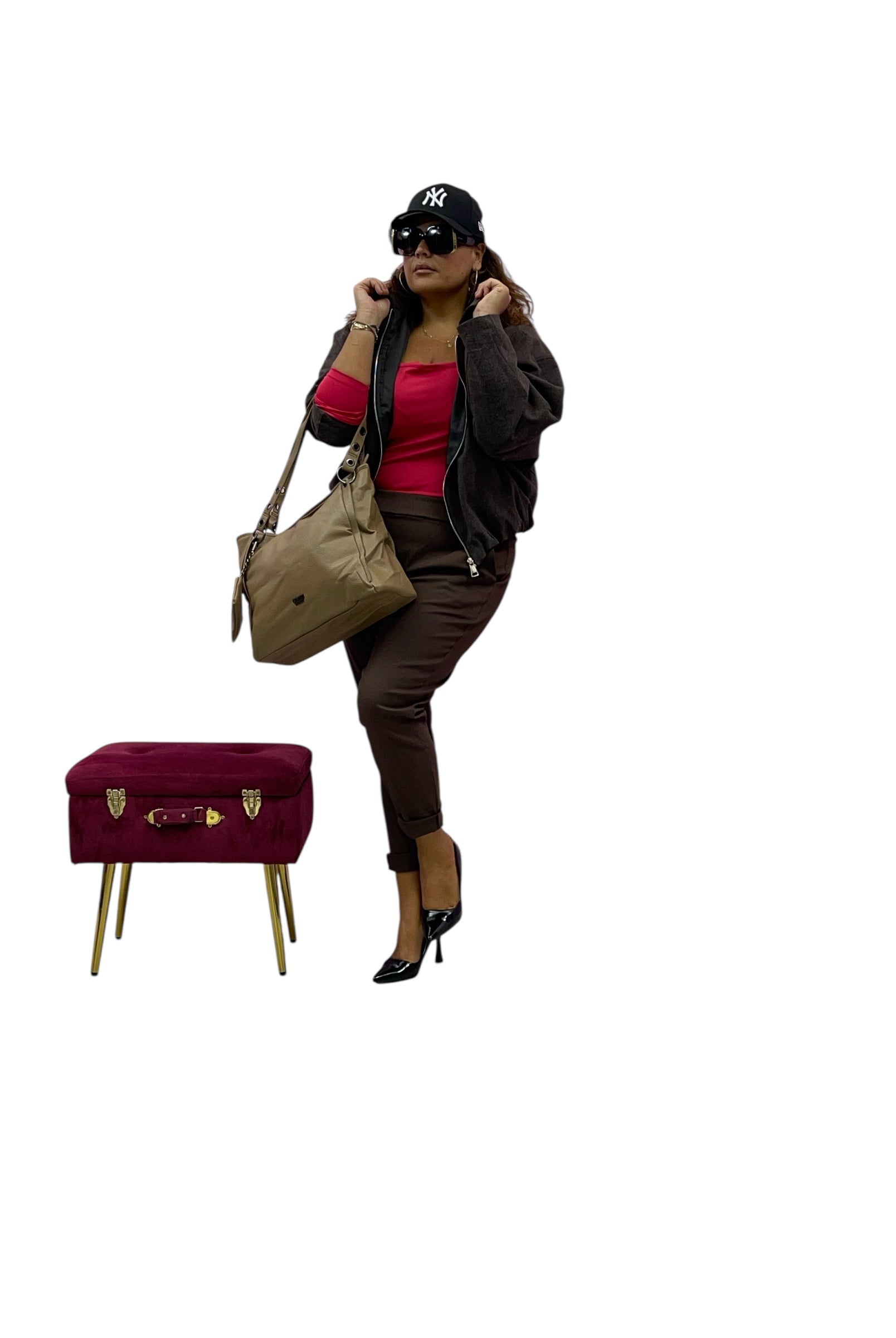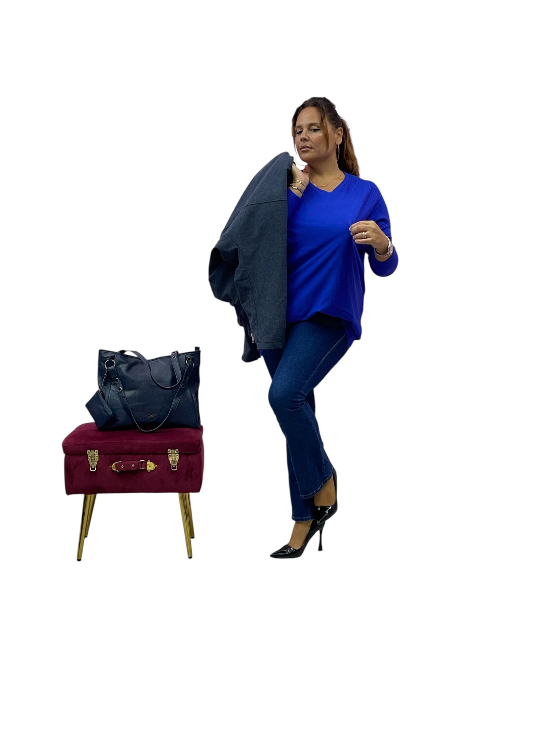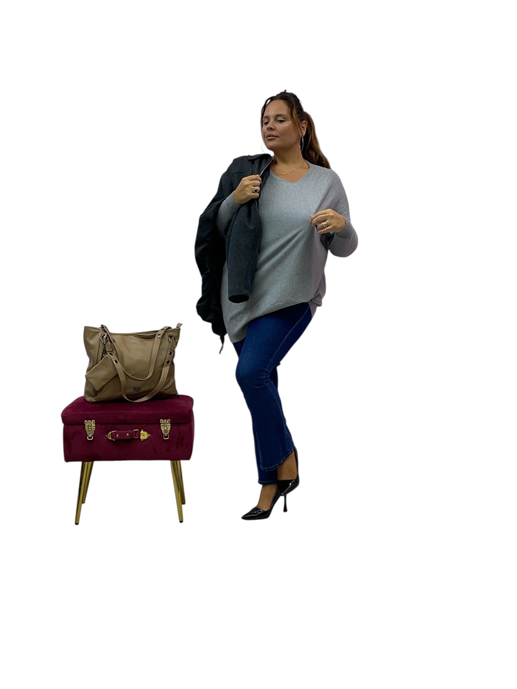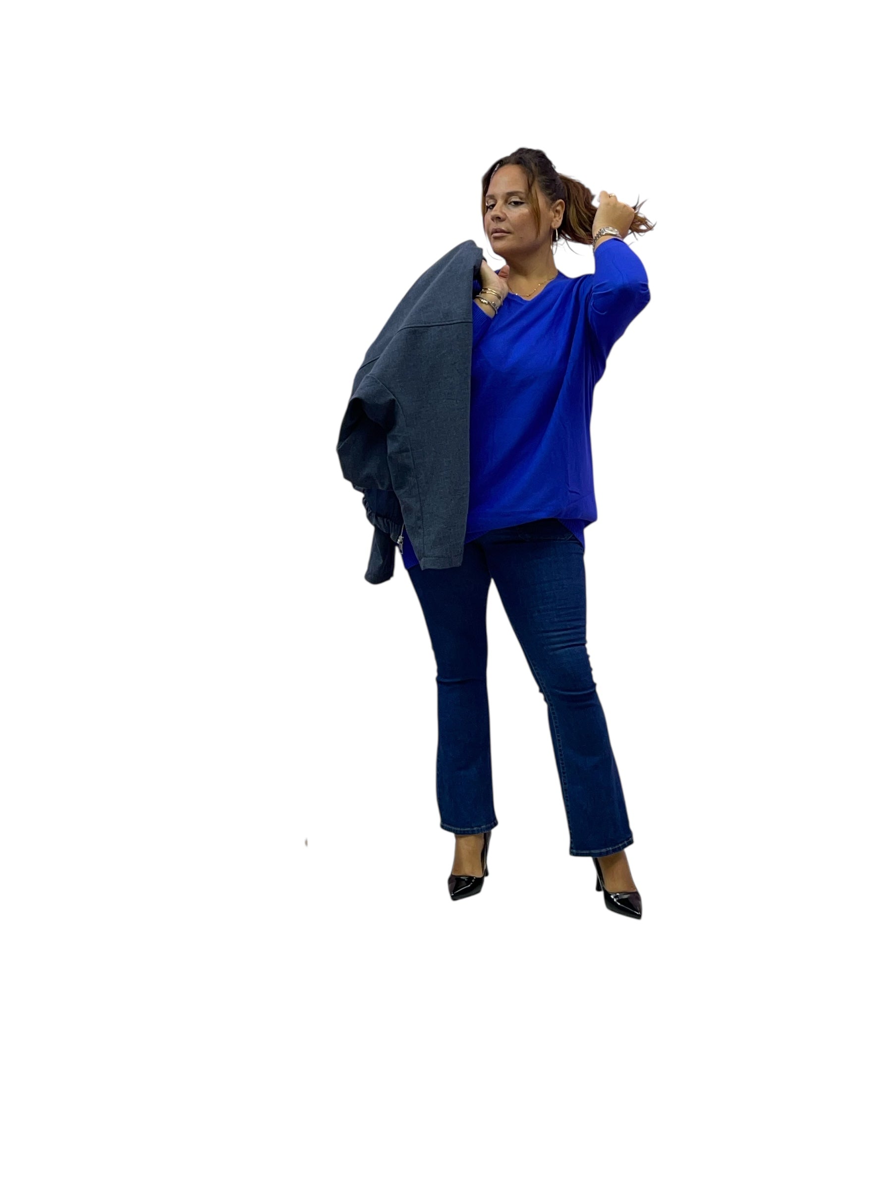 Magliettone over con trama rigata alle spalle e sulla fascia