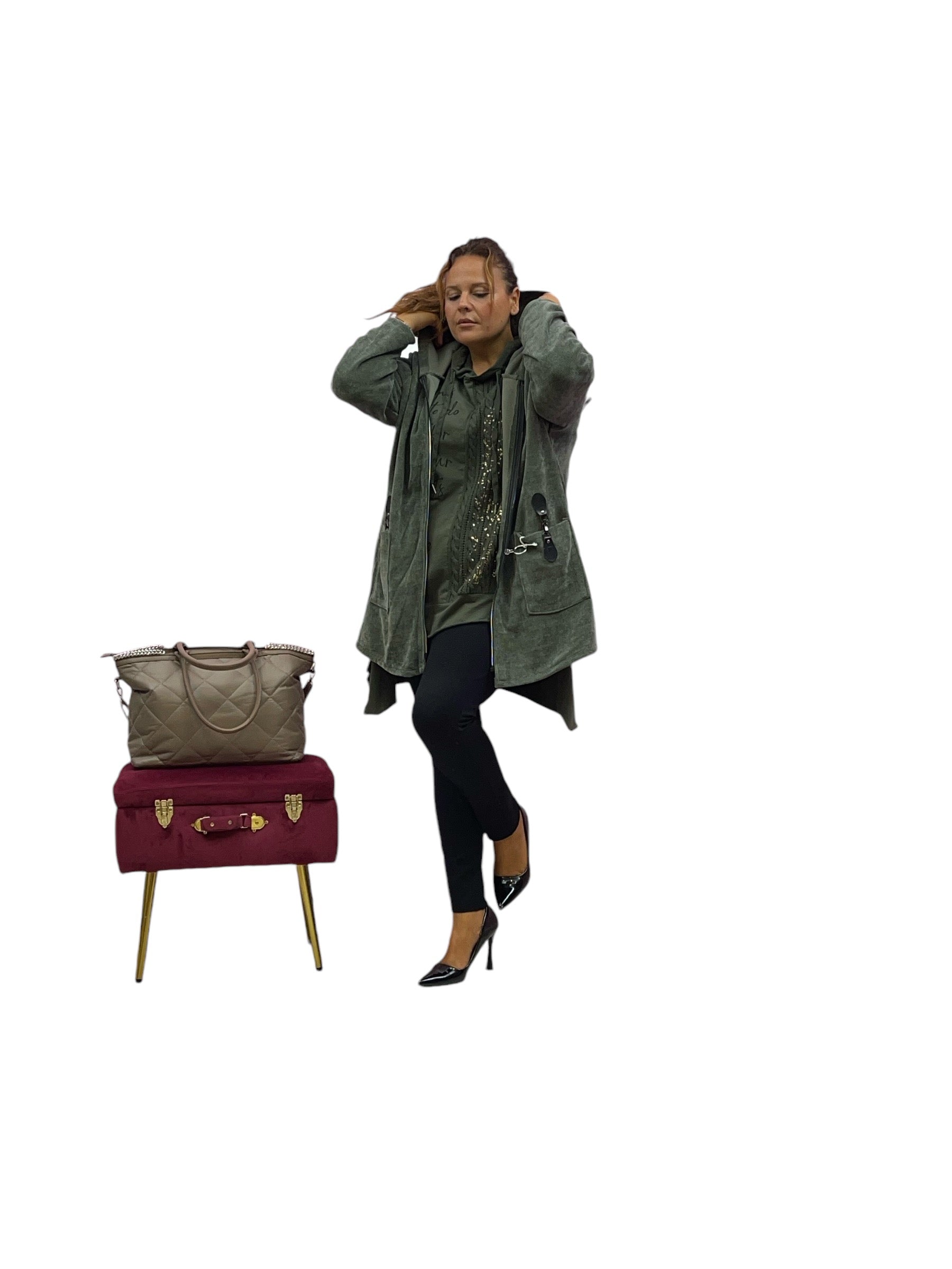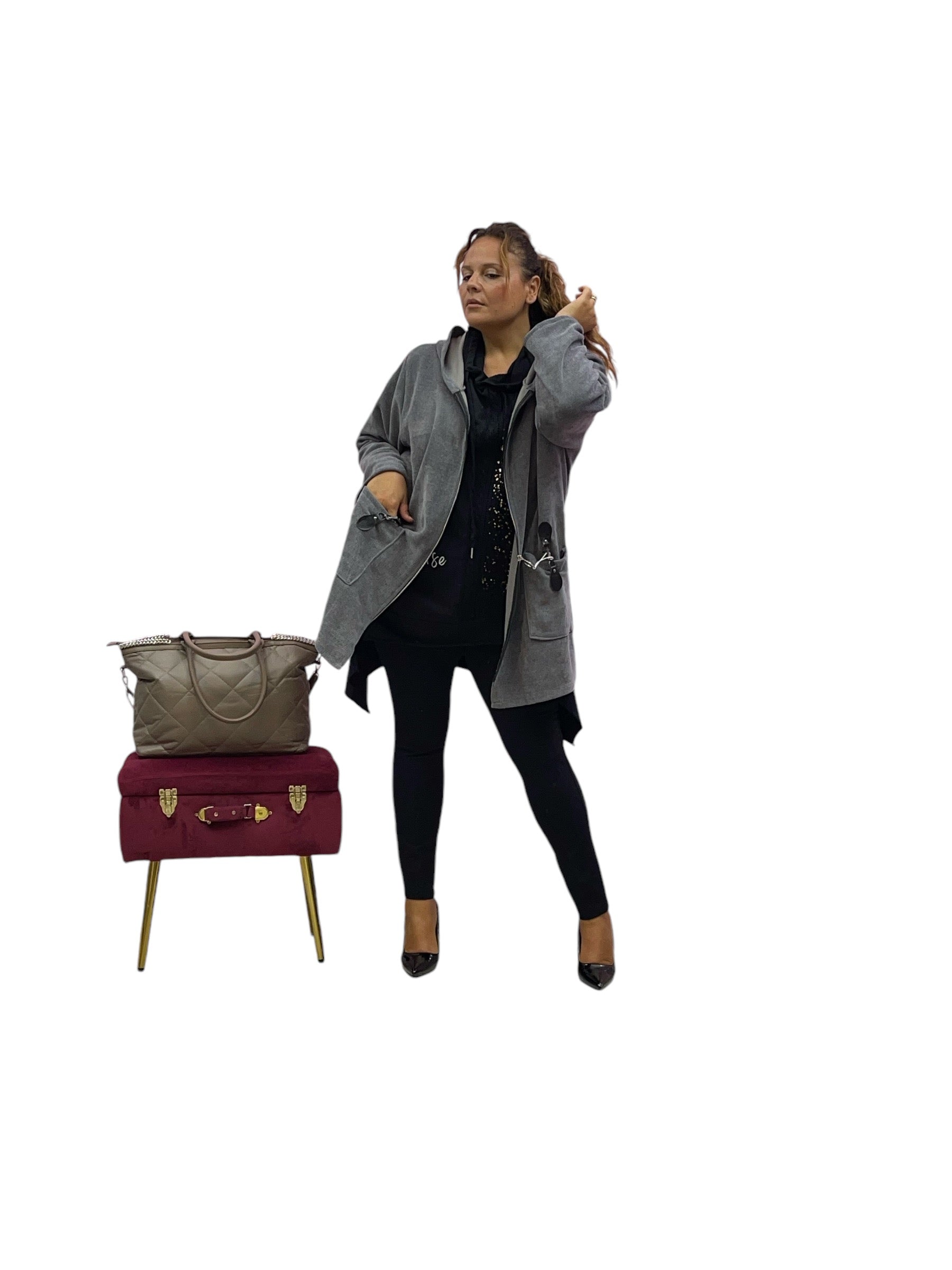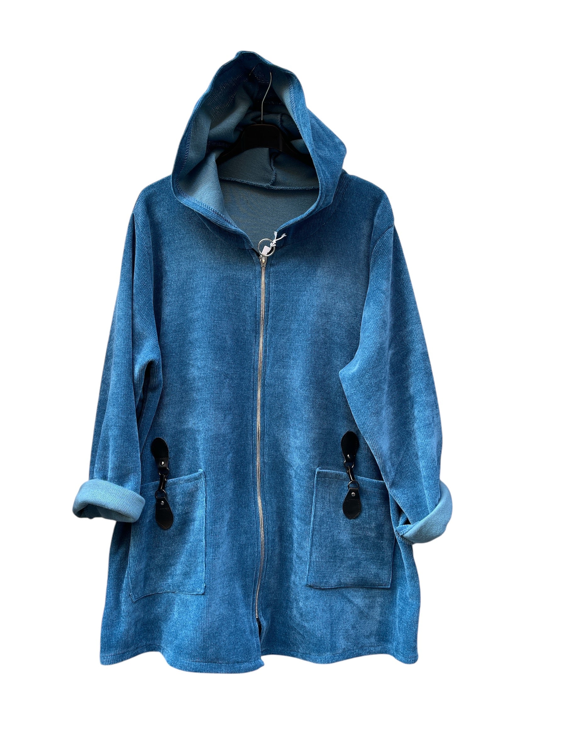 Magliettone over con cappuccio lavorato su un lato piu lungo dietro
