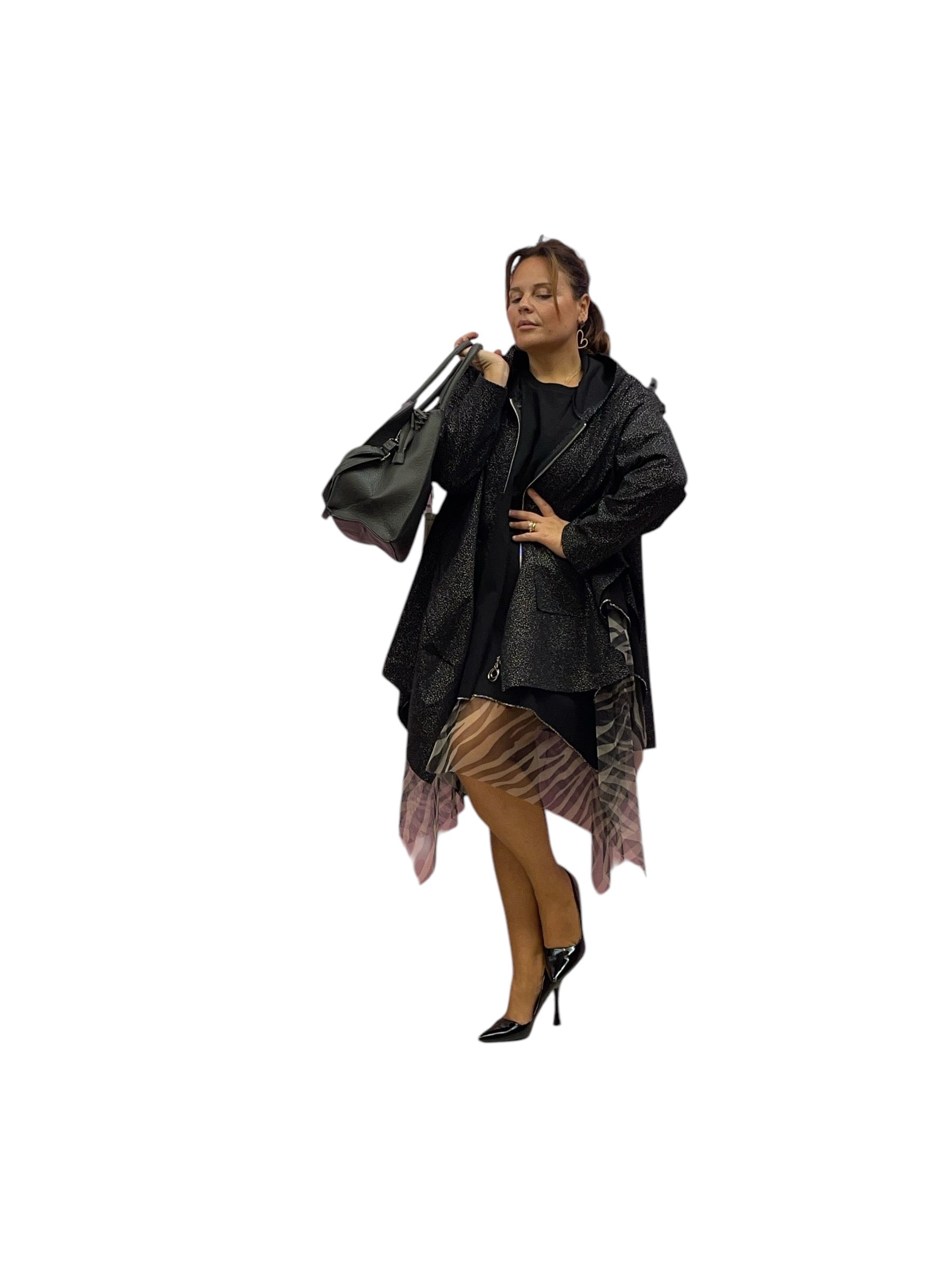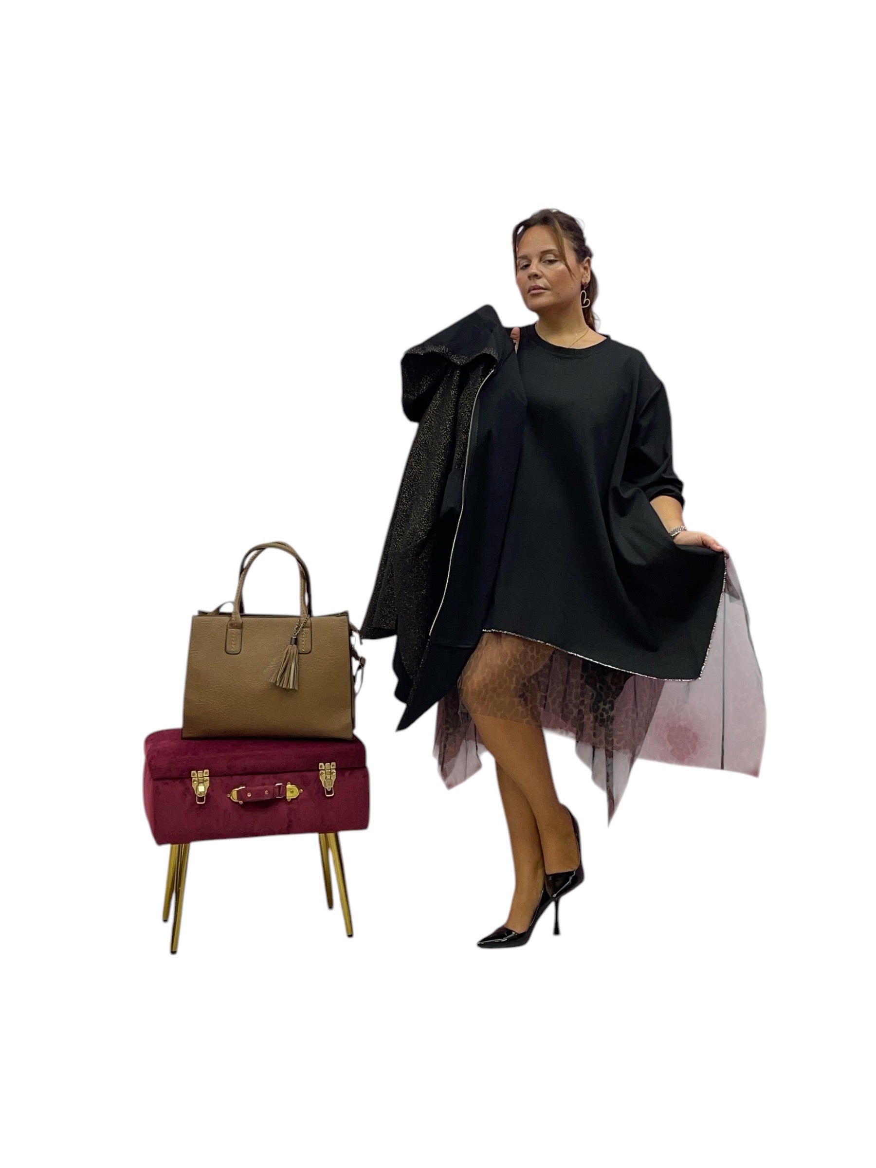 Magliettone/abito over in felpa con pizzi laterali con sotto cucito abito in tulle fantasia