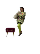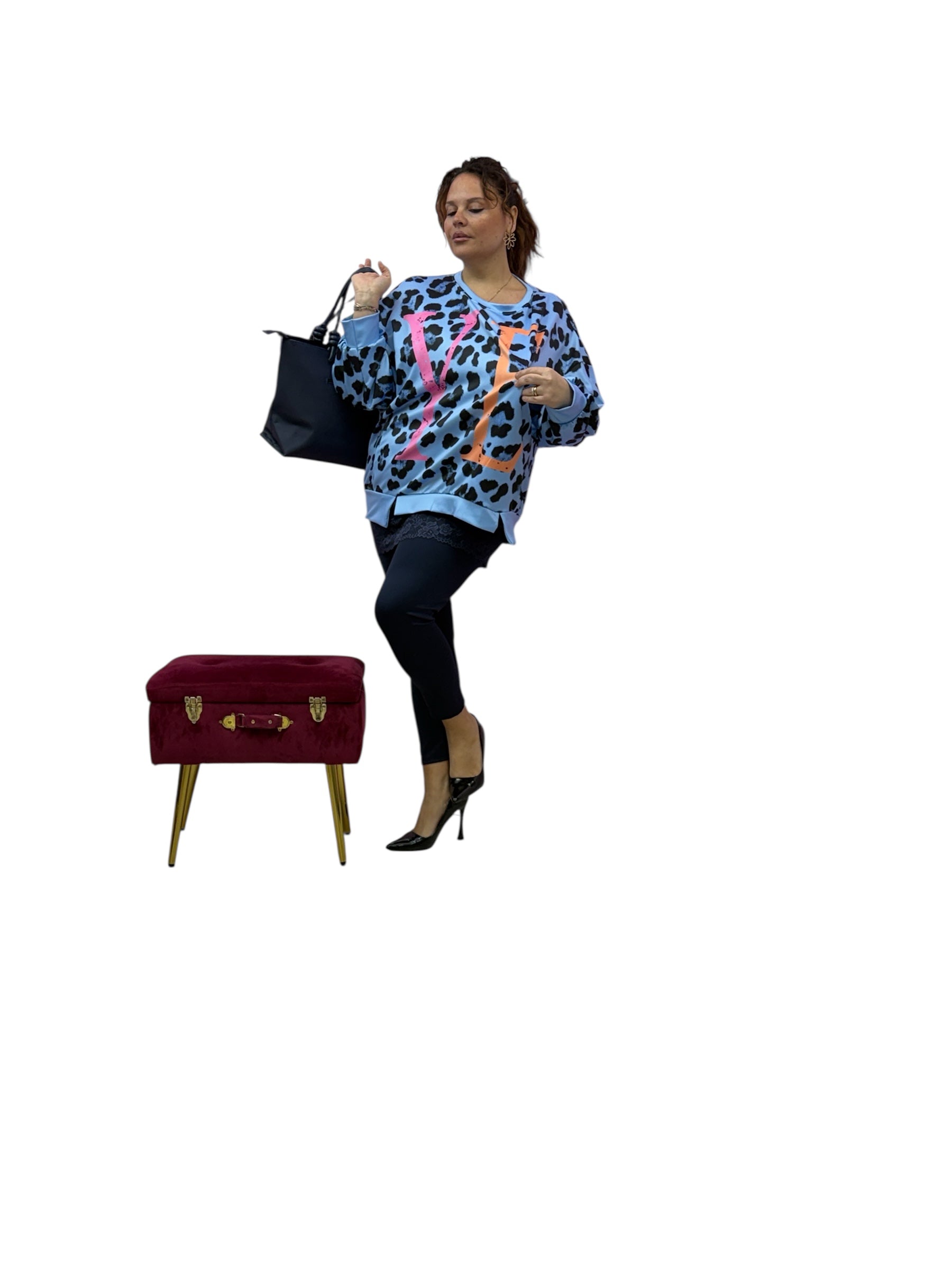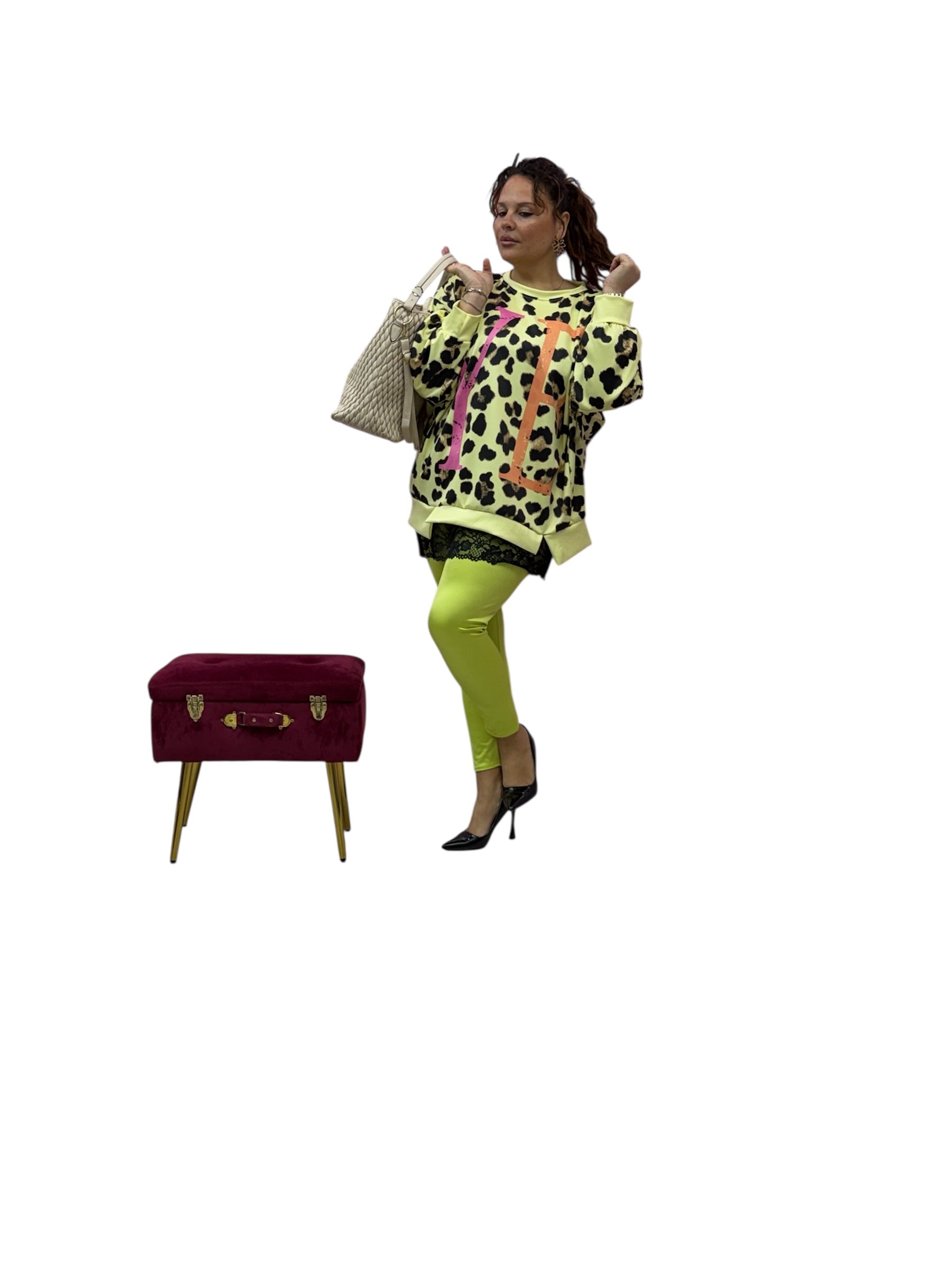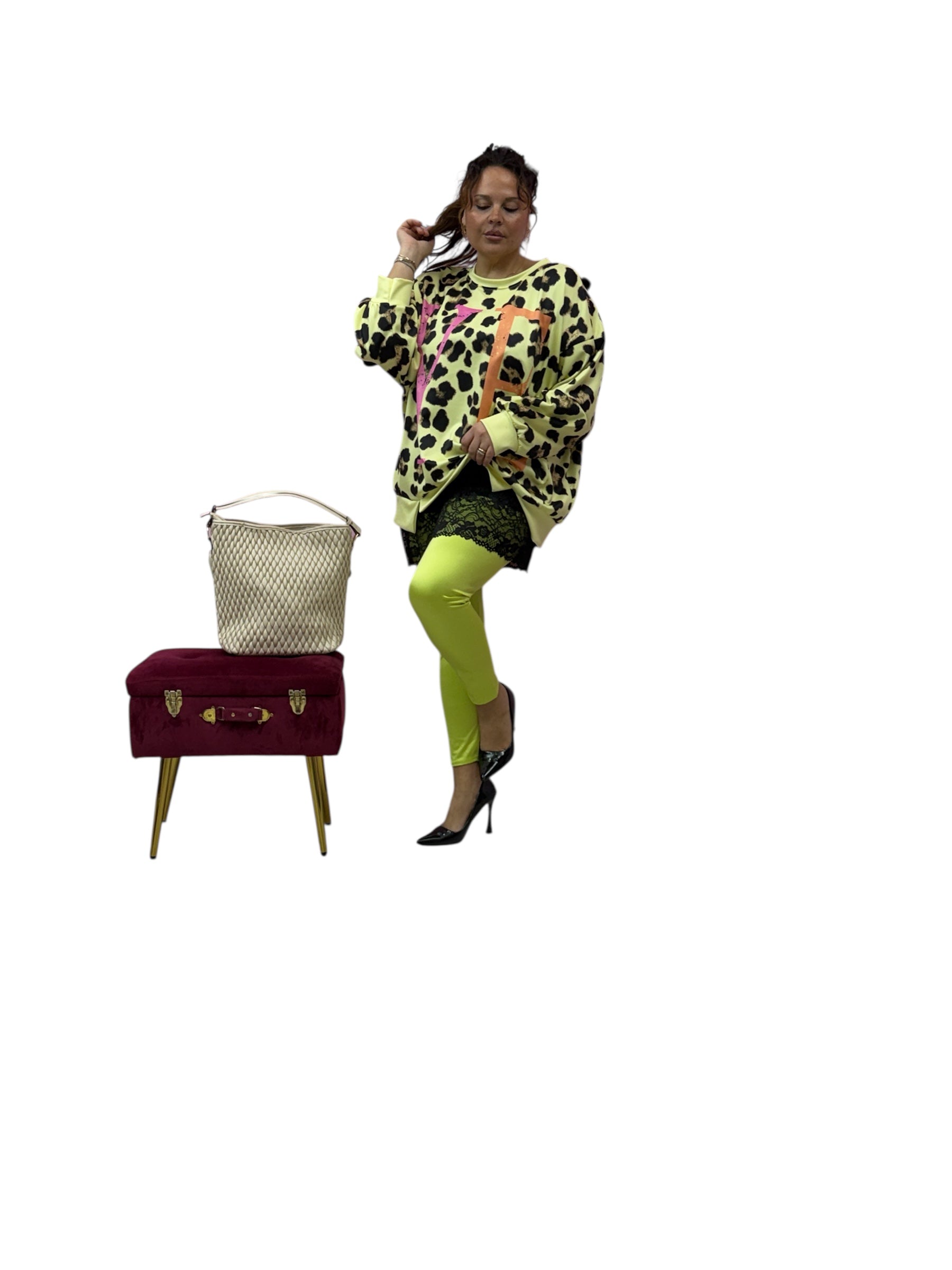 Magliettone over in felpa leopardata con lettere fluo