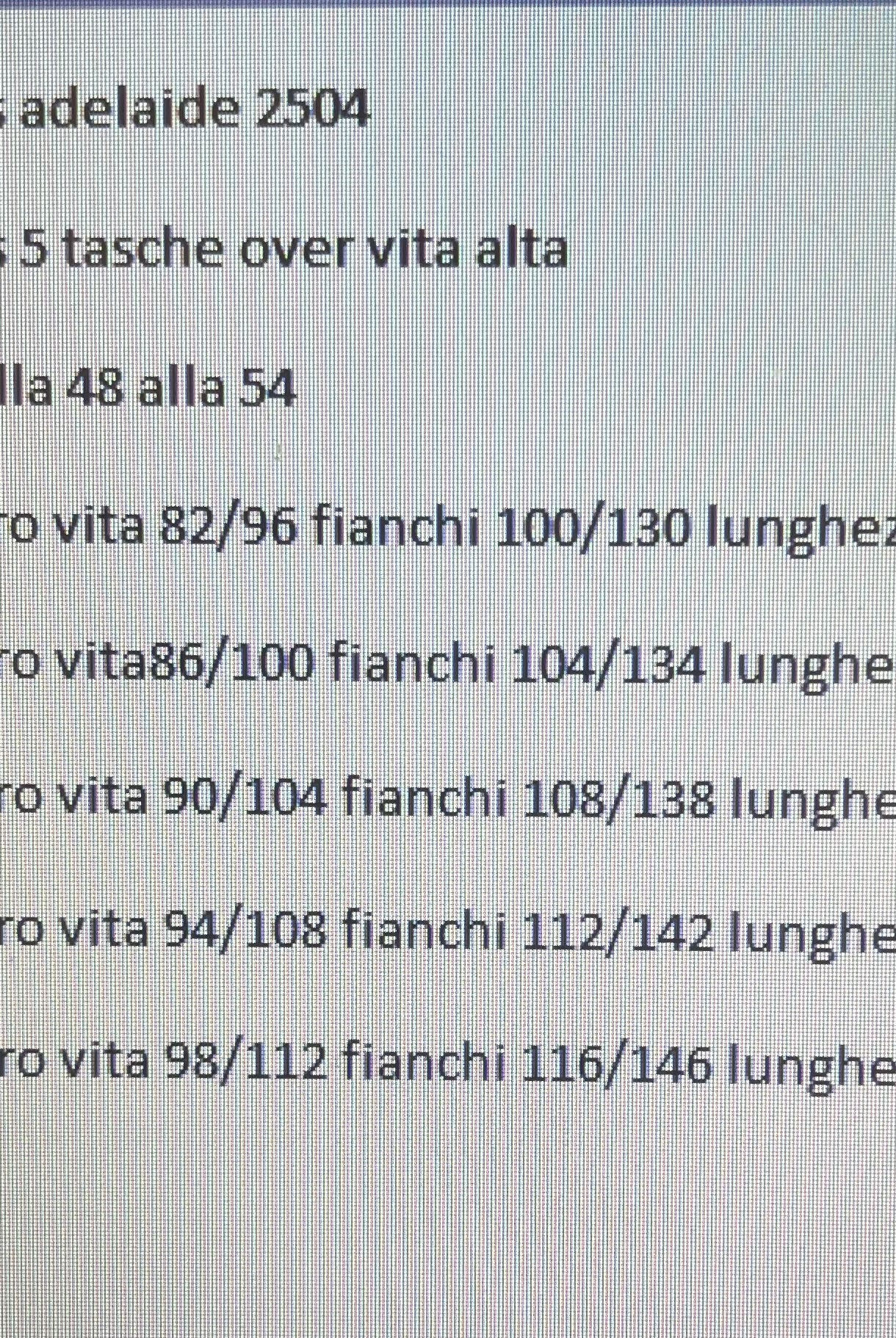 tg unica seno 160 fianchi 150 lunghezza avanti 83 dietro 103