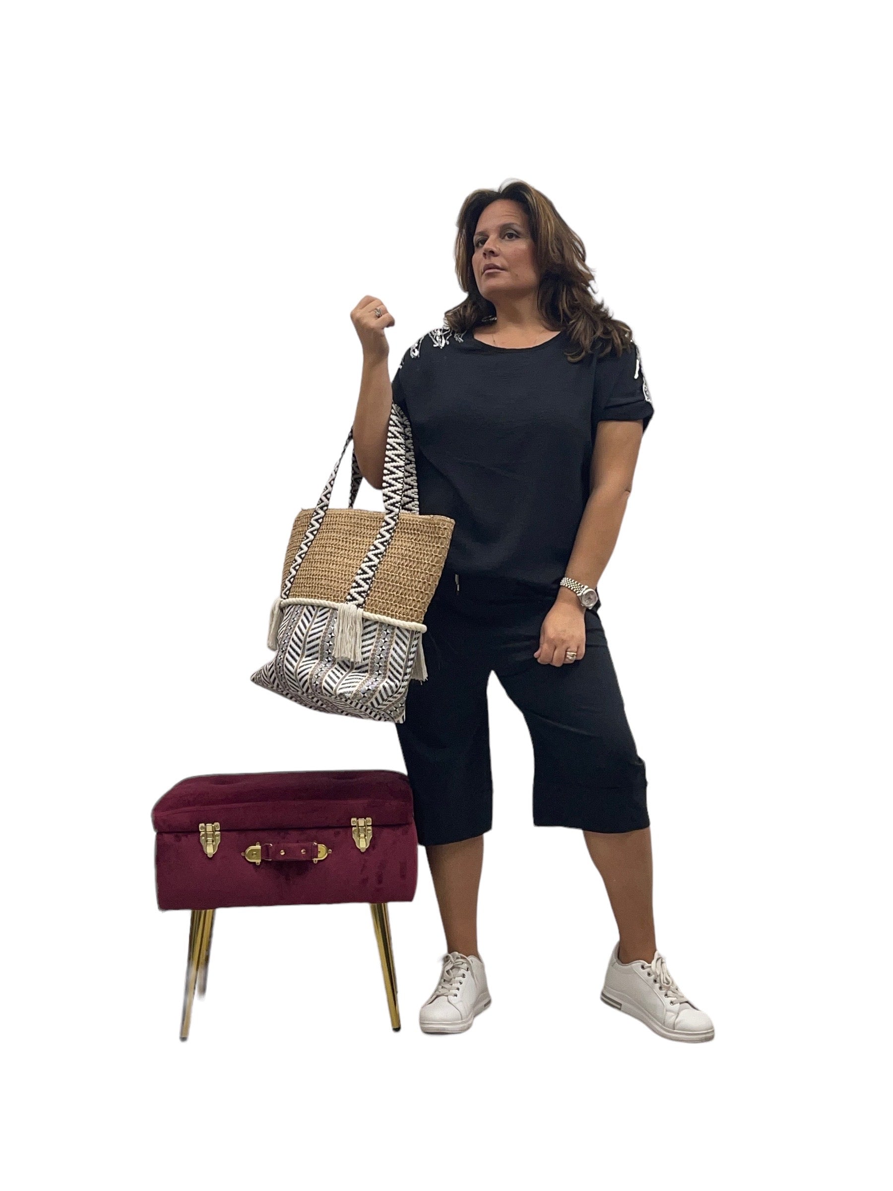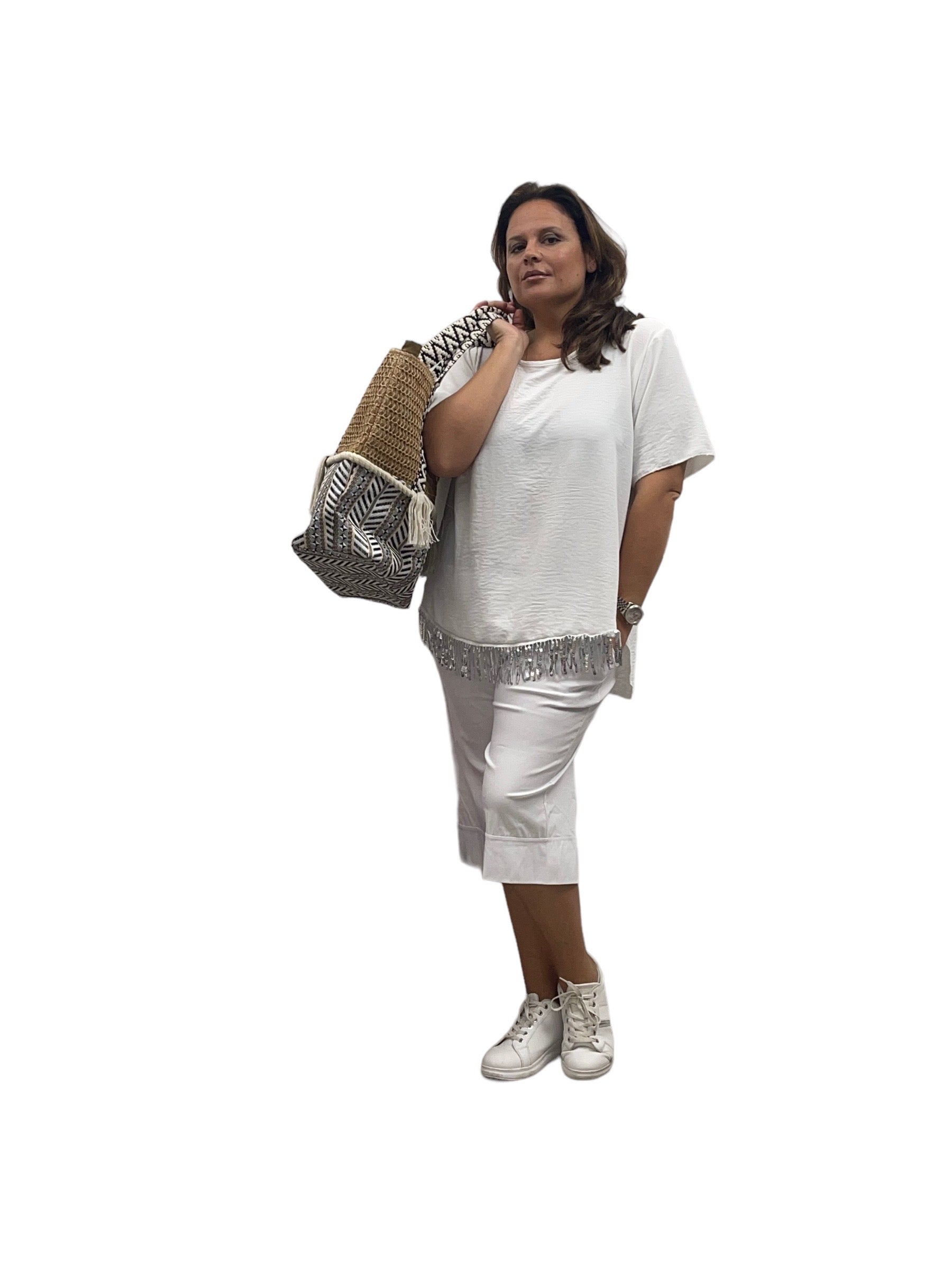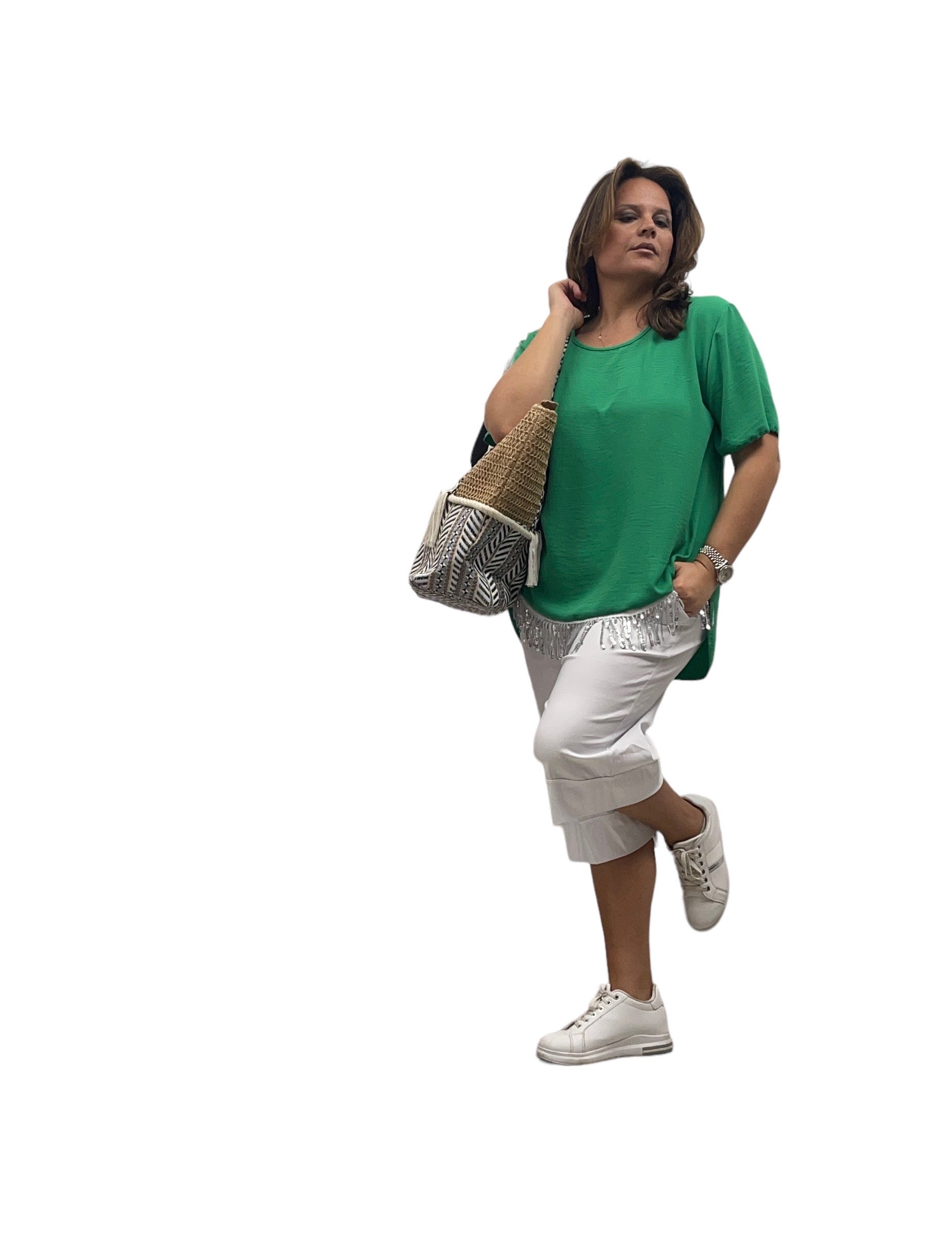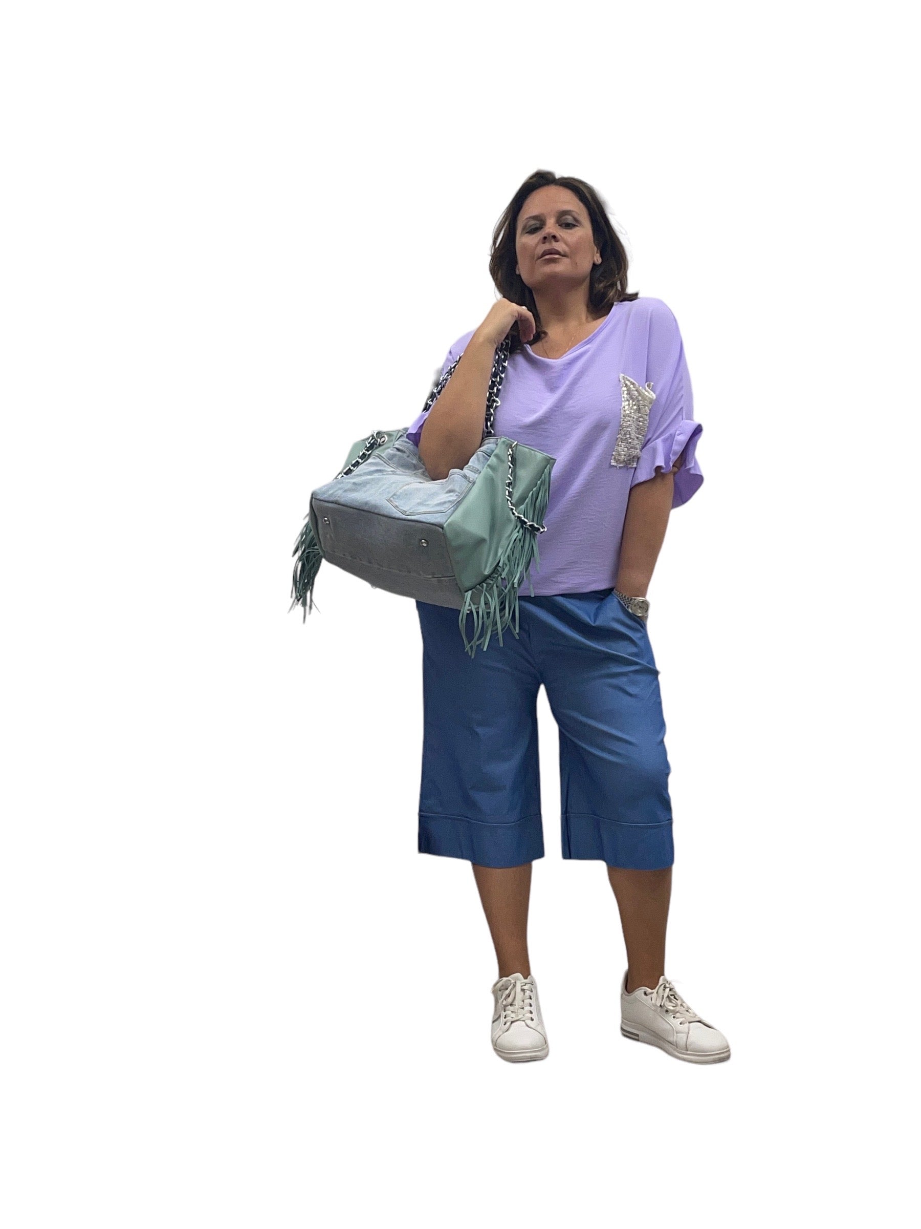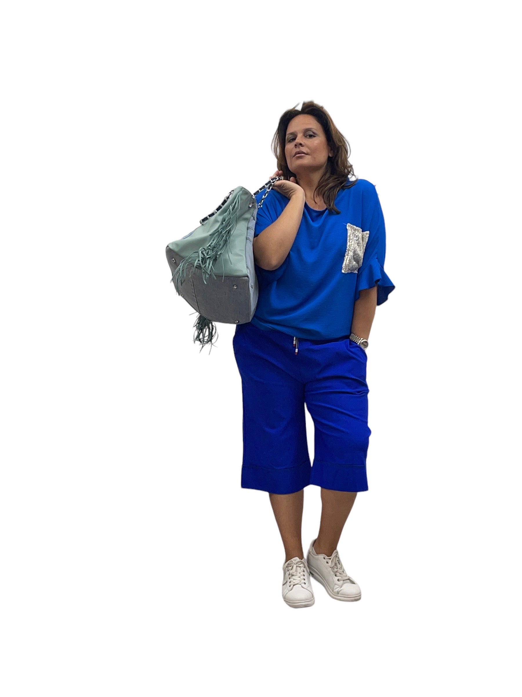 Pantaloni pinocchietto con elastico in vita,tasca america e laccio