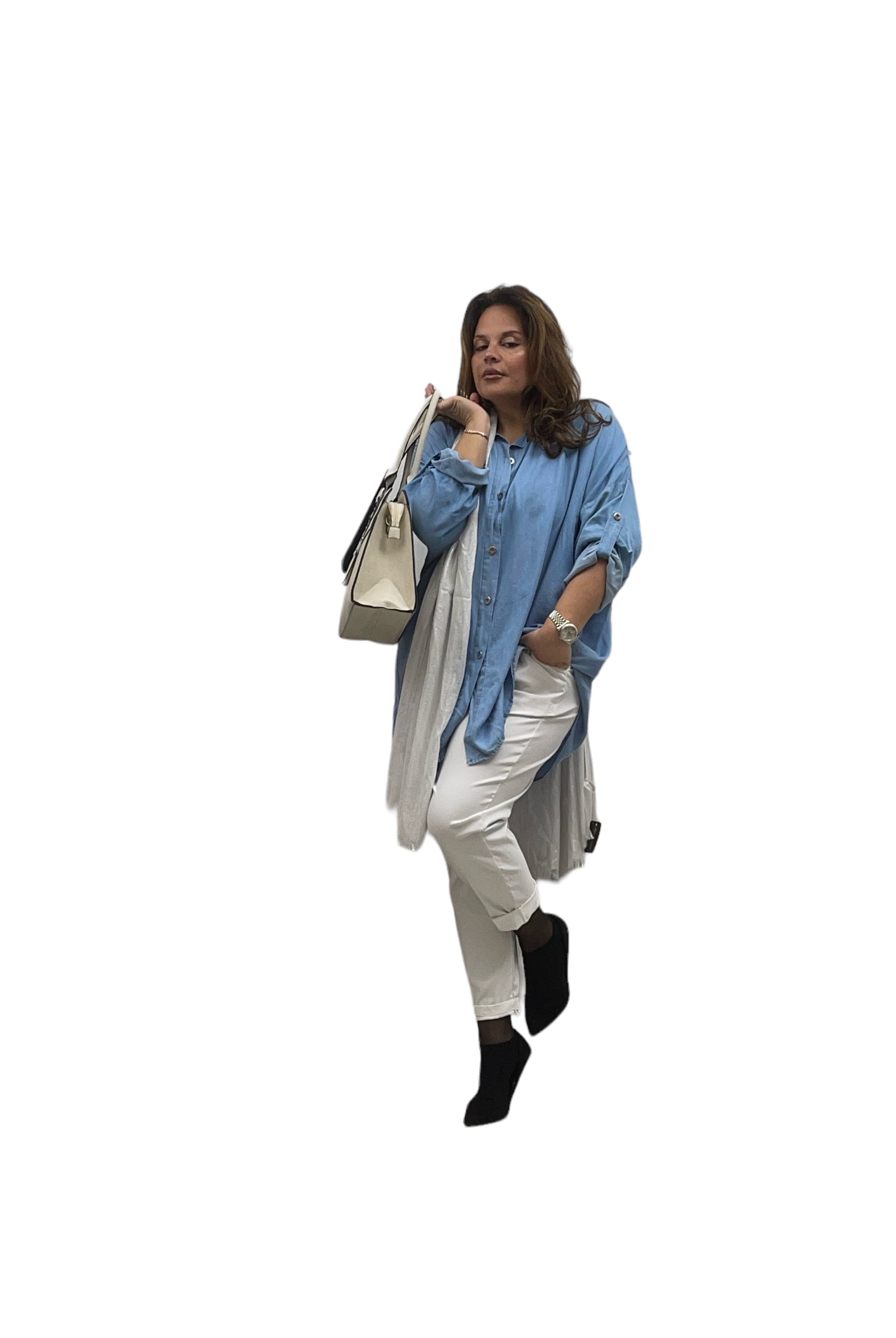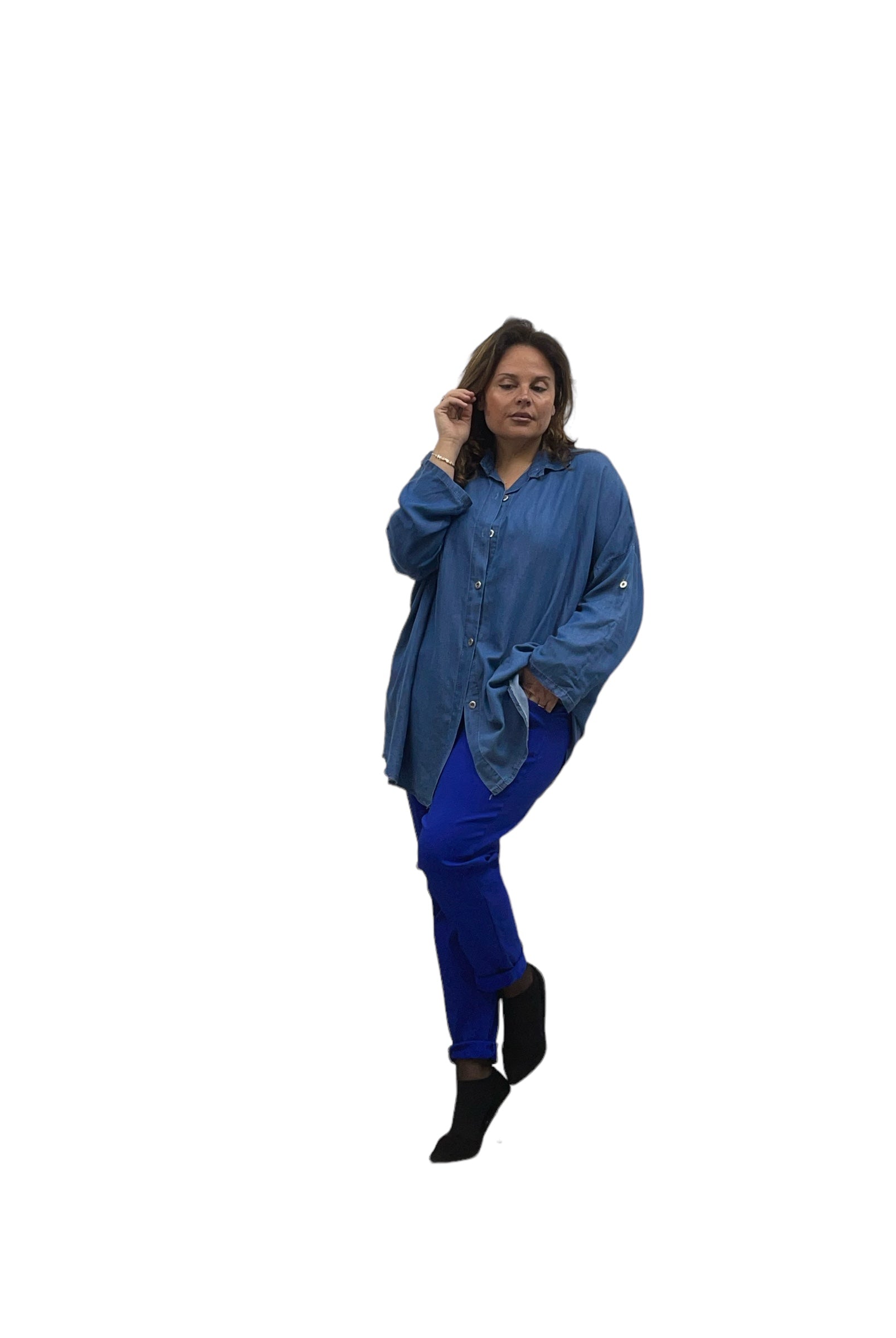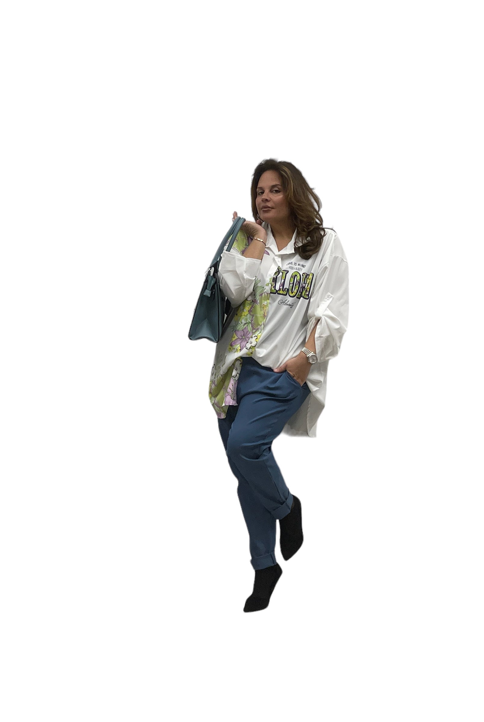 Pantaloni over 5 tasche con elastico in vita e tasca america