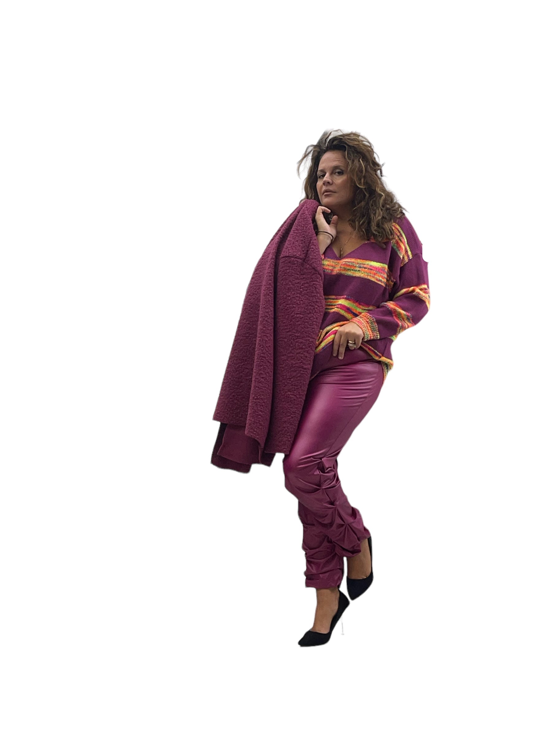 Pantaloni in ecopelle con fascia alta con zip e gamba a drappeggio felpato internamente