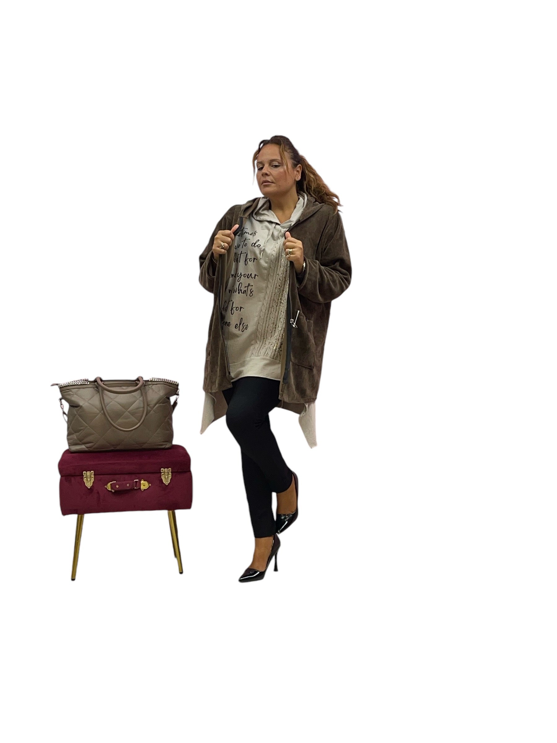 Spolverino over con cappuccio e tasconi con gancio effetto a costine